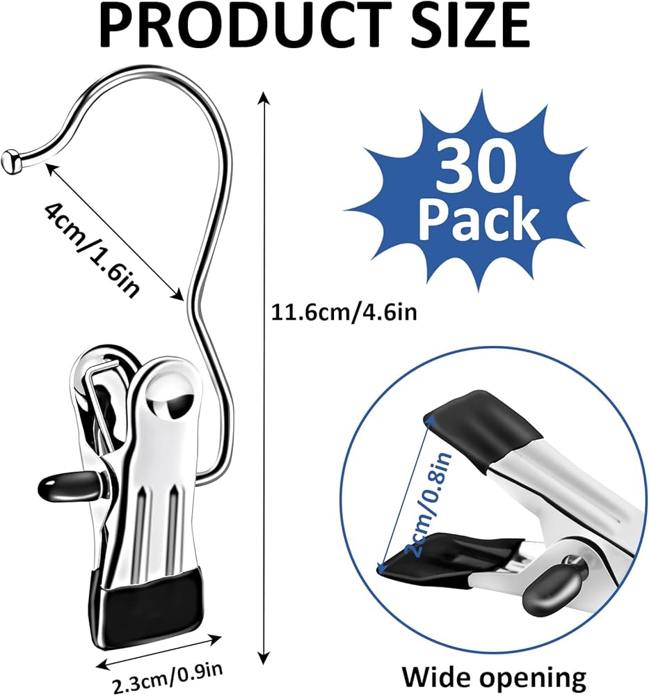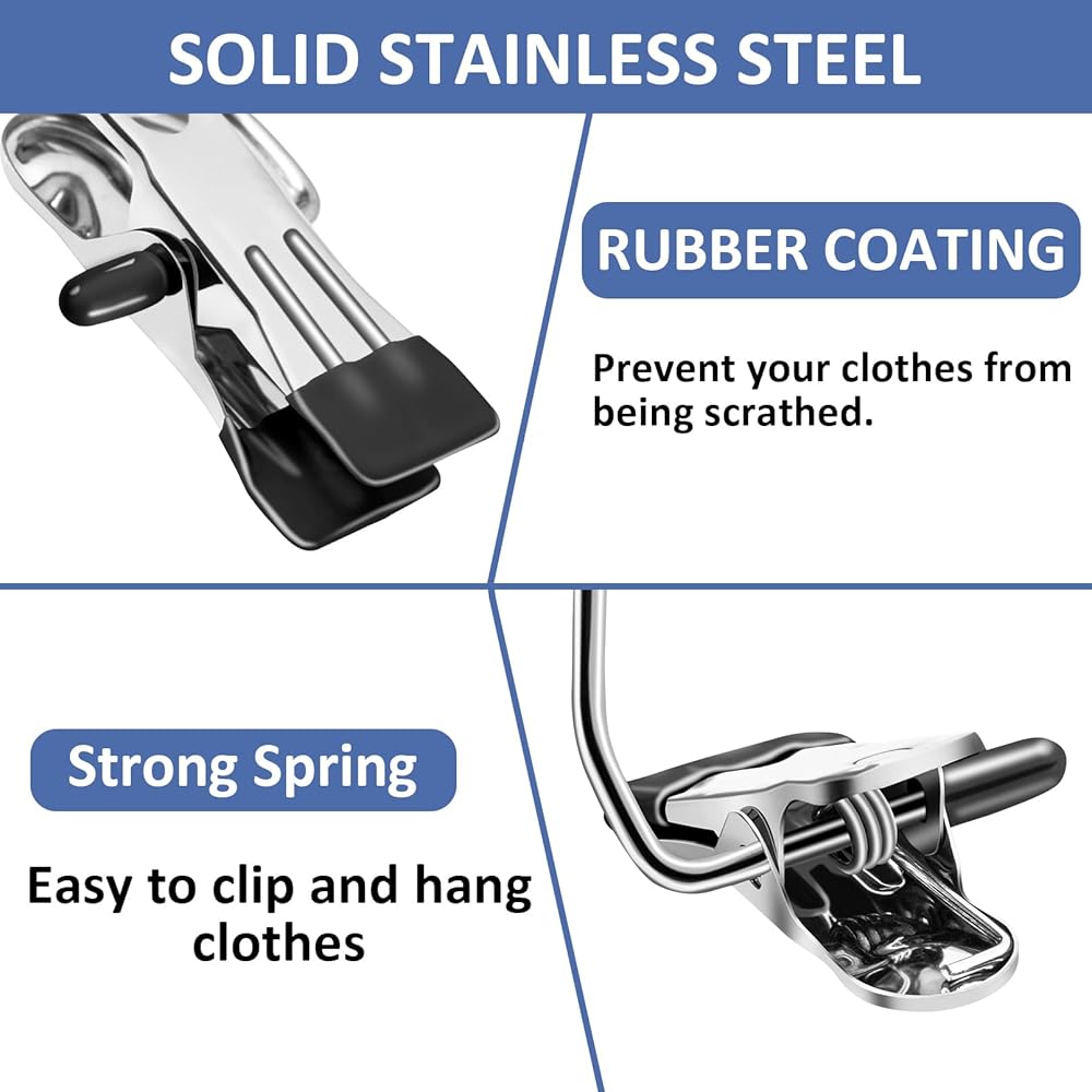 Solid Construction & Waterproof: Our laundry hooks with clips are made of high-quality stainless steel, strong and durable, rust-resistant, waterproof and corrosion resistant. With better load-bearing, would not bend, deform or break even if you hang heavy boots or shoes on it.