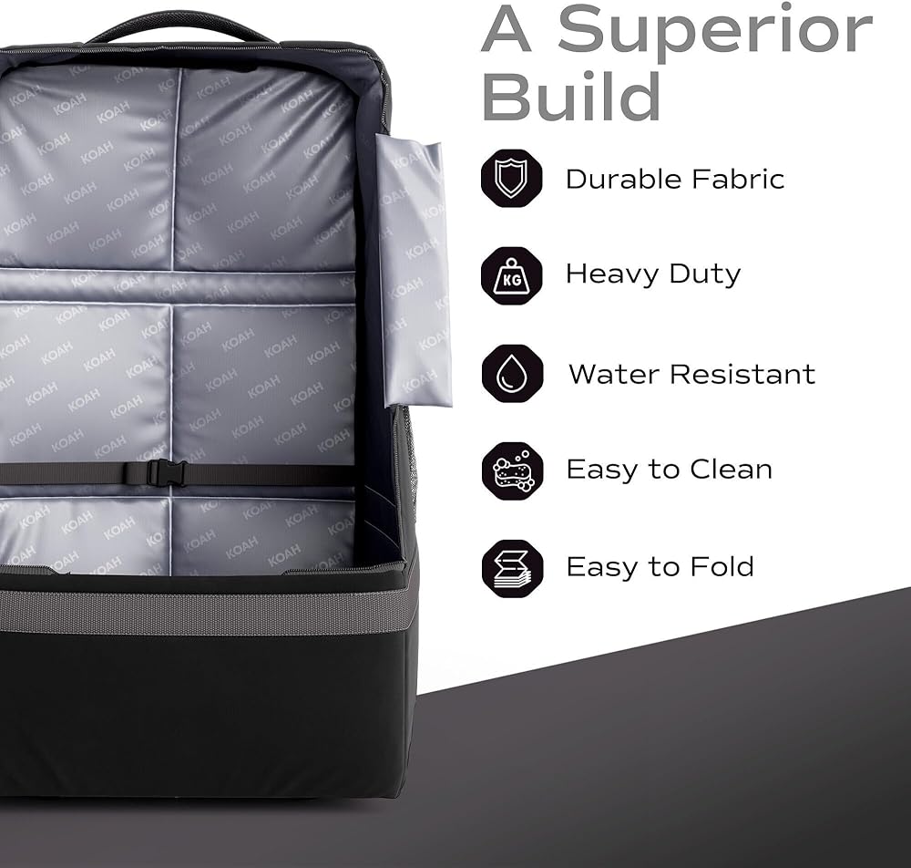 Thickened waterproof fabric provides protection, durability, resistant to tears Large 18''x18''x28.50'' Size Designed to fit most popular baby car seat brands Widened Padded Shoulder Straps ensures maximum comfort during travel Adjustable car-seat fixing strap Elastic storage pocket provides custom and convenient storage options Foldable design makes it easy to pack and transport for hassle-free travel.