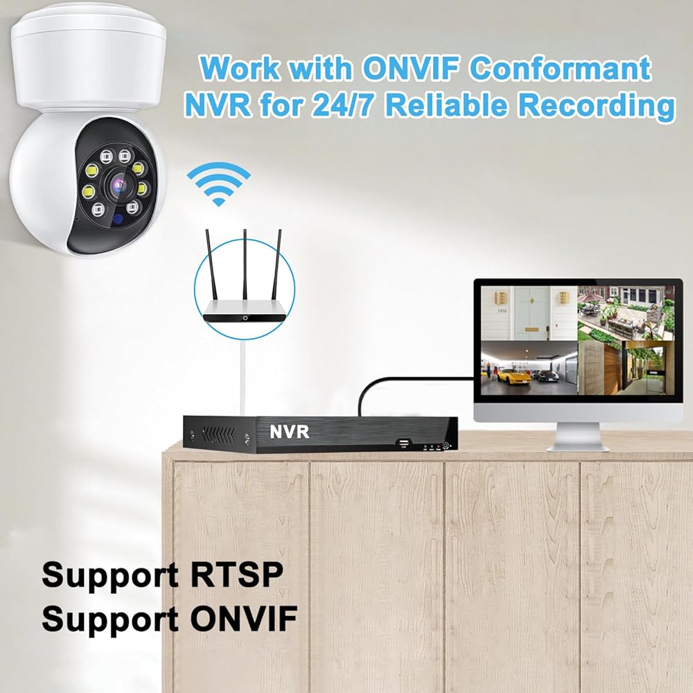 【Up, Down, All Around& Auto Tracking】This Pan/Tilt IP camera see everything across an entire room or walkway with the 350° horizontal and 80° vertical range pan/tilt field of view. this PTZ dome surveillance camera adopts a highly sensitive motion sensor. If some people invade your home, this security camera will track the motion and record every single move