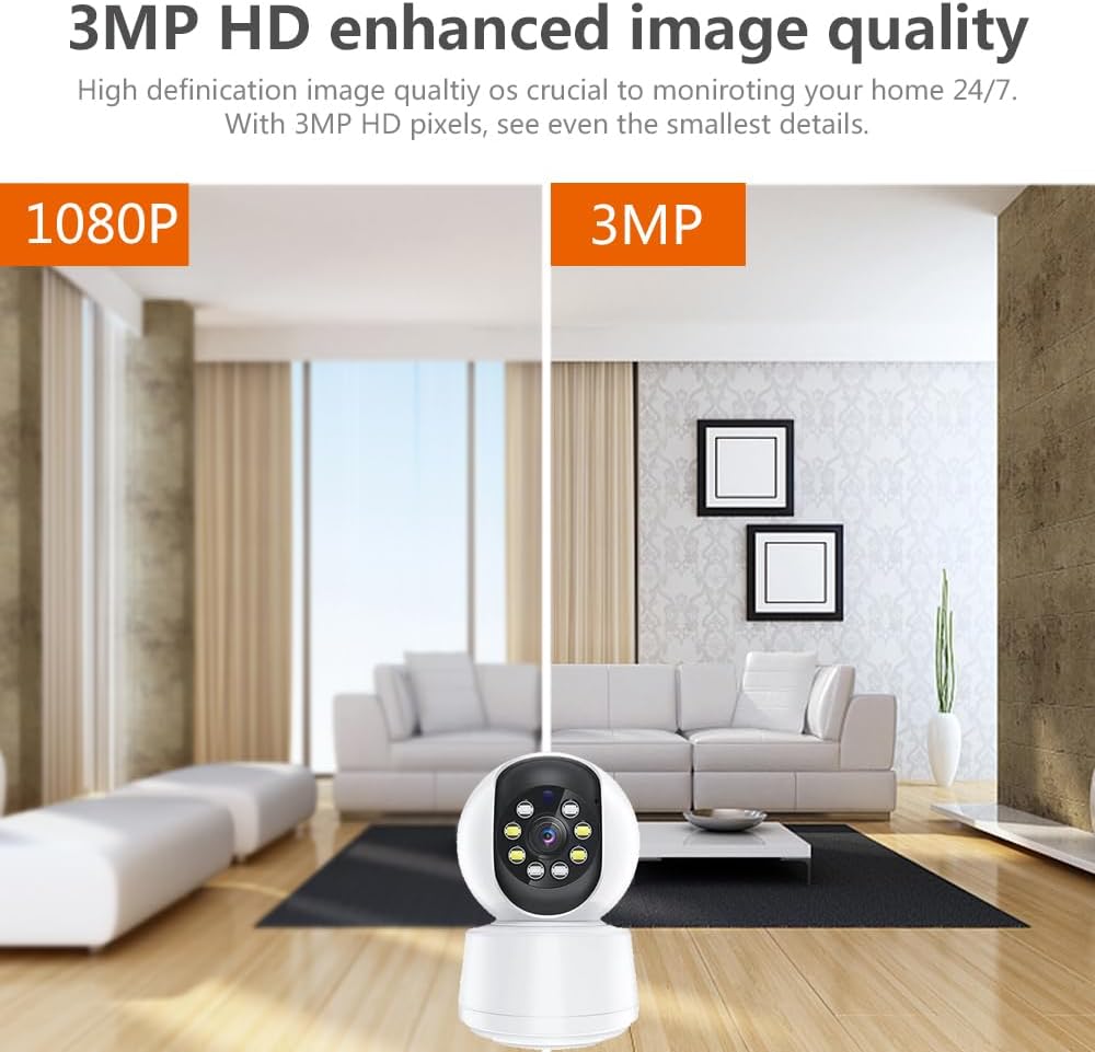【2K (2304x1296) High Definition】Capture every detail inside your home with crystal-clear 2K high definition video with this indoor security camera. Easily see what your baby is holding or what your pet is playing with.