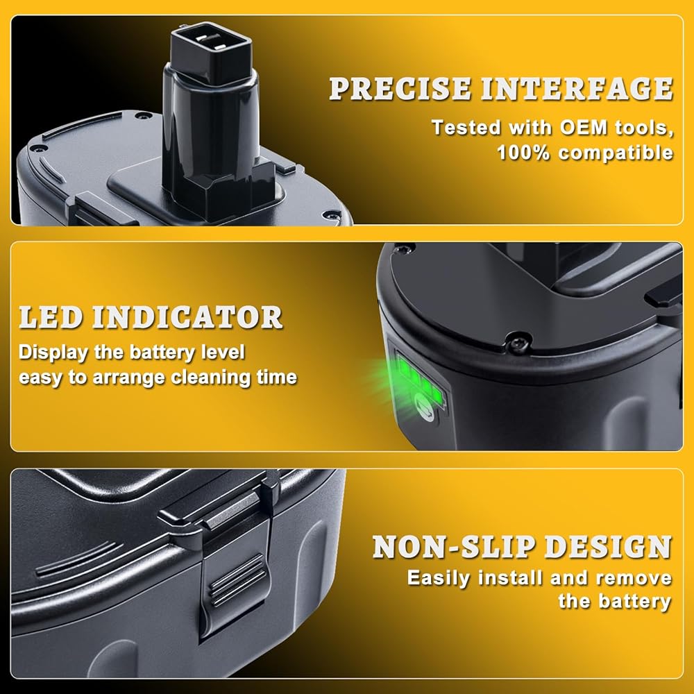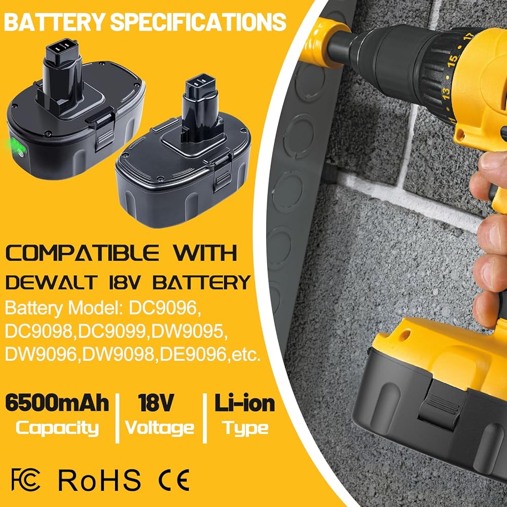 [Compatible Model]: Replacement for 18V Battery DC9096 DC9098 DC9099 DE9039 DE9095 DE9096 DE9098 DW9095 DW9096 DW9098.Compatible chargers: DW9116 DC9310 DC9319 DC9320 DCB103,etc.(NOTE: not compatible with DW9226 DW9107 charger).