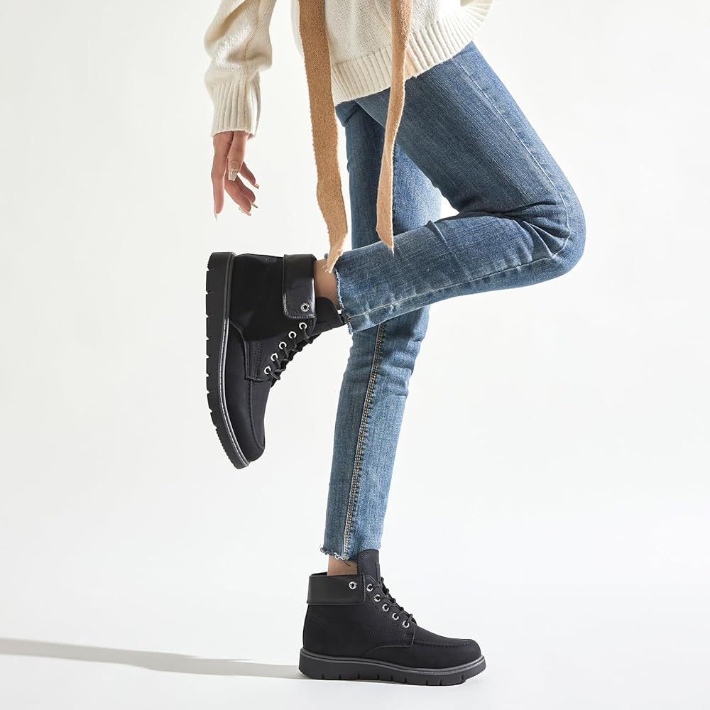 Stylish Shoe Collar: The collar of boots for women is adjustable, you can fold it up or down to make ankle boots becoming combat boots. This special design can satisfied your different needs to match your outfits.