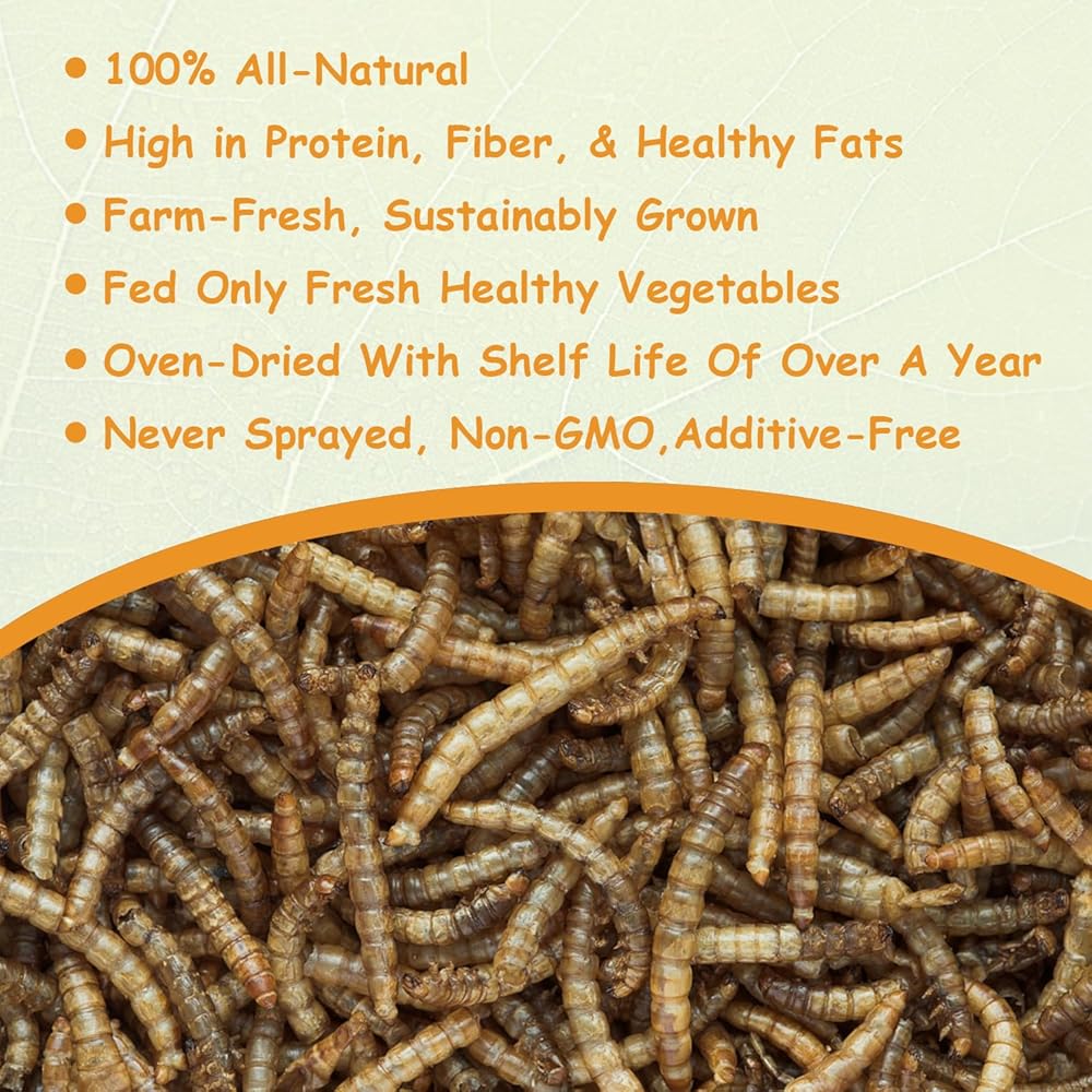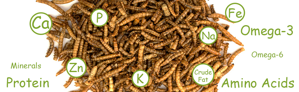 SOURCE OF PROTEIN: Mealworms are a great source of protein, containing up to 50% protein by weight. Dried Mealworms are a rich source of protein, vitamins, and minerals, making them a nutritious food source for animals