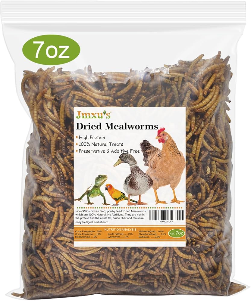 Jmxu's 7oz Dried Mealworms for Chicken or Birds, High Protein Chicken Feed, Premium Meal Worms Food and Treats for Laying Hens, Ducks, Wild Birds, Reptiles, Lizard, Turtles