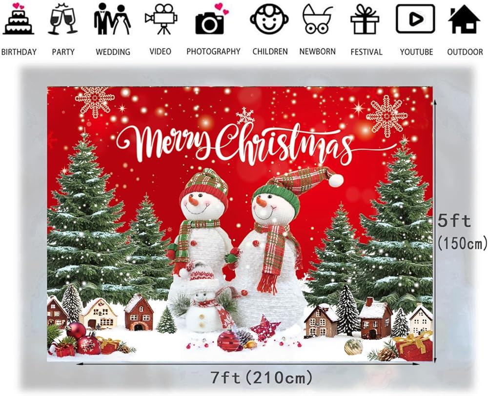 LTLYH 7x5ft Christmas Photography Backdrop Merry Christmas Snowman Backdrop Red Winter Wonderland Background with Trees and Houses for Photography Holiday Party Decorations 288