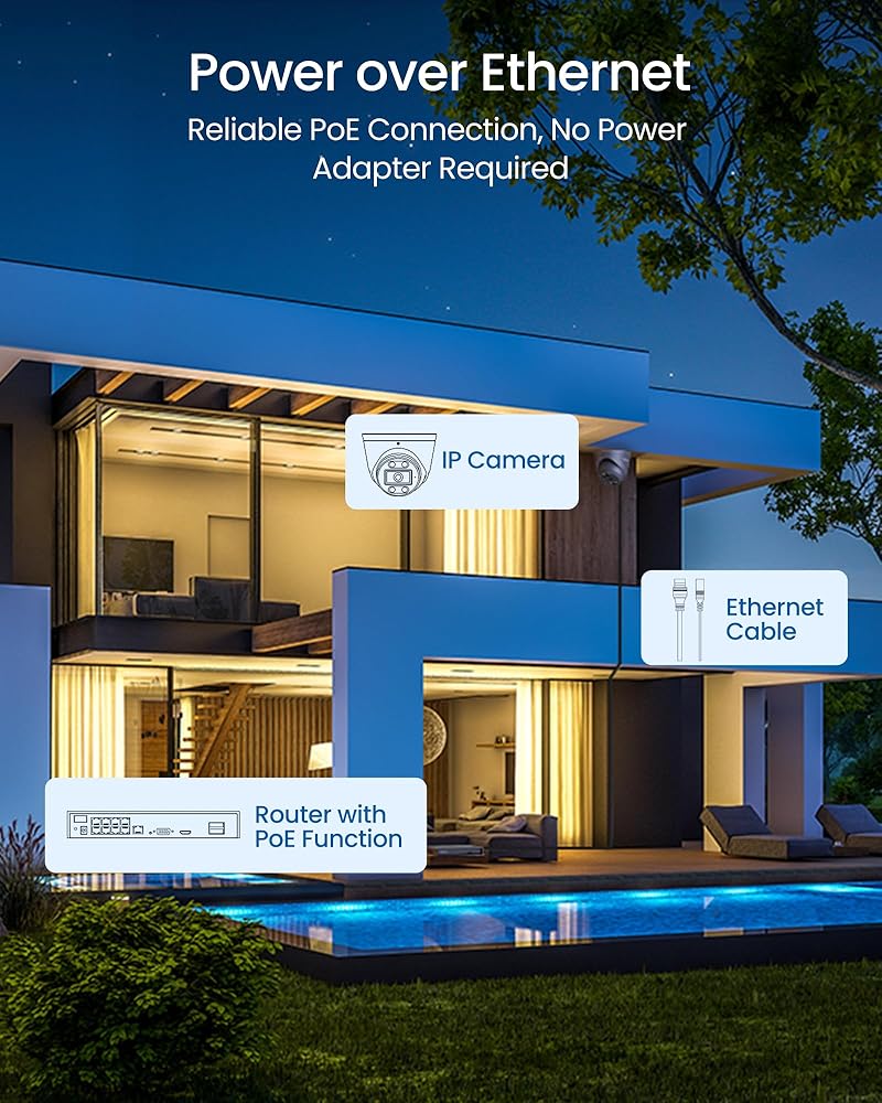 【Two-way Audio & Multi-user Access】This 4K PoE 8MP camera has a built-in microphone and speaker to support live communication. You can share your device to other family members to watch live view simultaneously via their own devices.