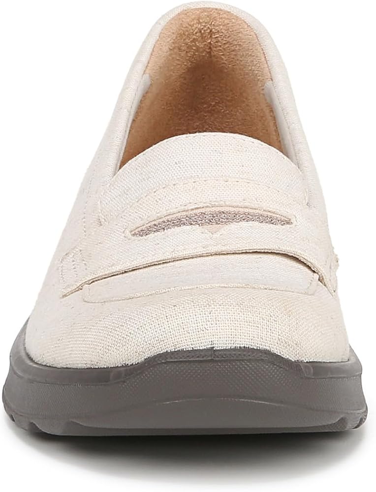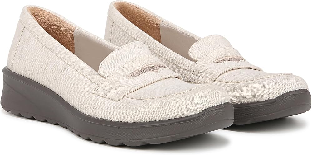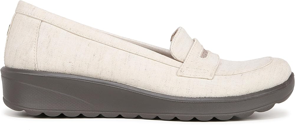 Cute & carefree! Glide into these extra-cushy, machine washable womens slip on shoes with loafer-like details. Stretch fabric upper with partially recycled linings and round toe. Slip on fit. BLOOM™ materials: Eco-conscious algae-infused foam layer under the insole. BZEES Cloud Technology: Designed so you'll feel weightless, energized and free. Ultra Lightweight: Step lightly with a nearly weightless feel. Dynamic Stretch Fabrics: Move freely in shoes with built-in stretch. FreeFoam™ Comfort: Low pressure insoles with maximum foot contact and cushy arch support. DreamPuff foam padding at the heel. SoCush arch support. 1 1/4 inch heel. EVA outsole. Get Width It: Countless pairs of Bzees come in wide width shoes for women. Machine Washable: Wash on cold and air dry.