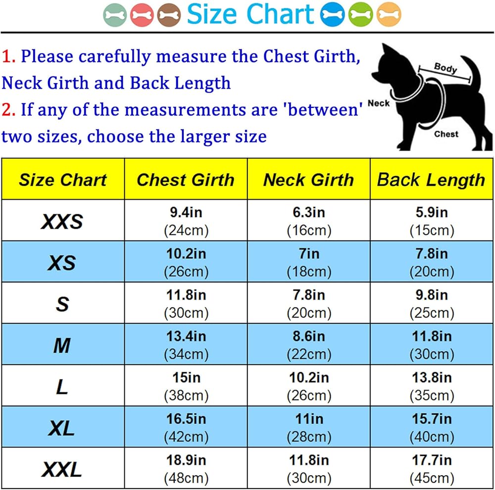 3. If your dog is between two sizes, we recommend that you can buy a larger size dog clothes