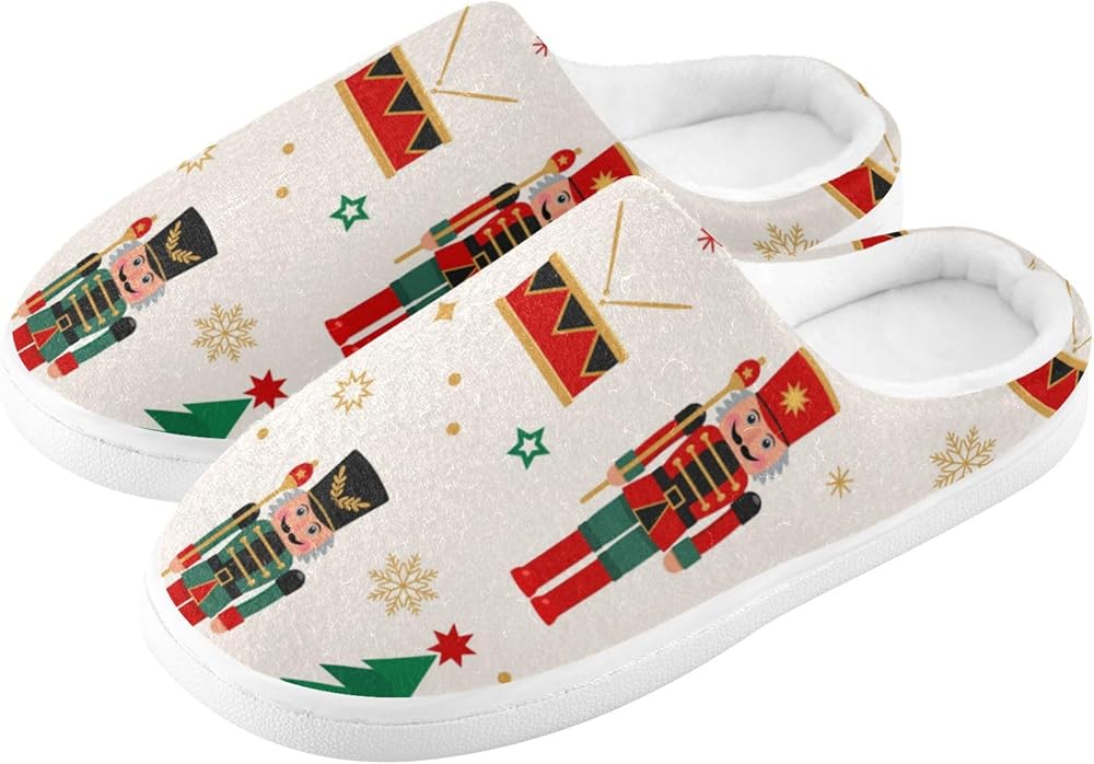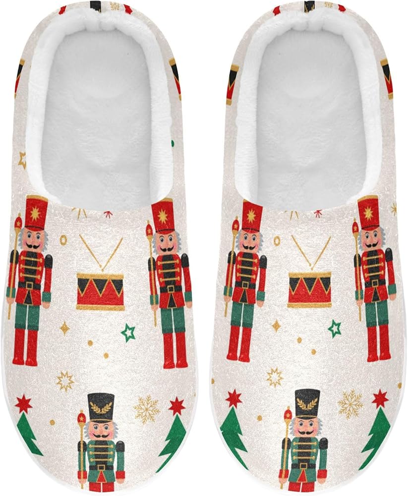 ZOEO House Slippers for Women Girls,Nutcracker Christmas Tree Winter Fuzzy Memory Foam Cozy Shoes for Men Slippers Indoor Outdoor Bedroom