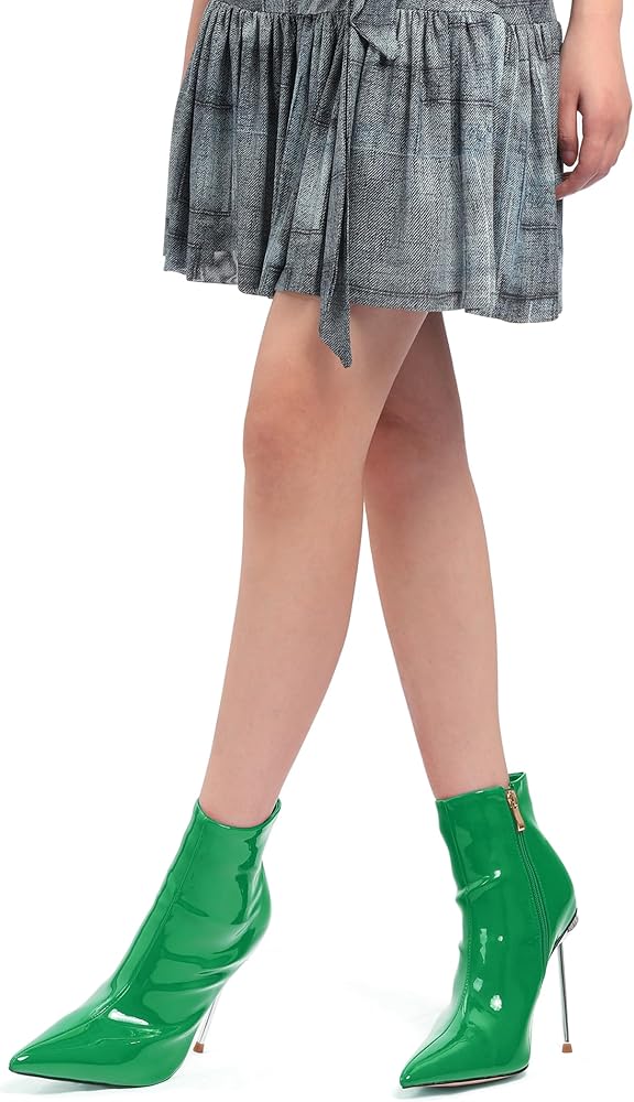 Design:This ankle boot has a heel height of 11 cm/4.5 inches and ankle circumference approx 27 cm/10.60 inches.Experience unparalleled comfort with our high stiletto heel ankle boots,designed with a focus on ergonomics to provide support and cushioning for all-day wear during the fall and winter seasons.These booties feature a classic pointed toe that adds a touch of elegance and sophistication to your party and dressy outfits,making them a versatile addition to your wardrobe.