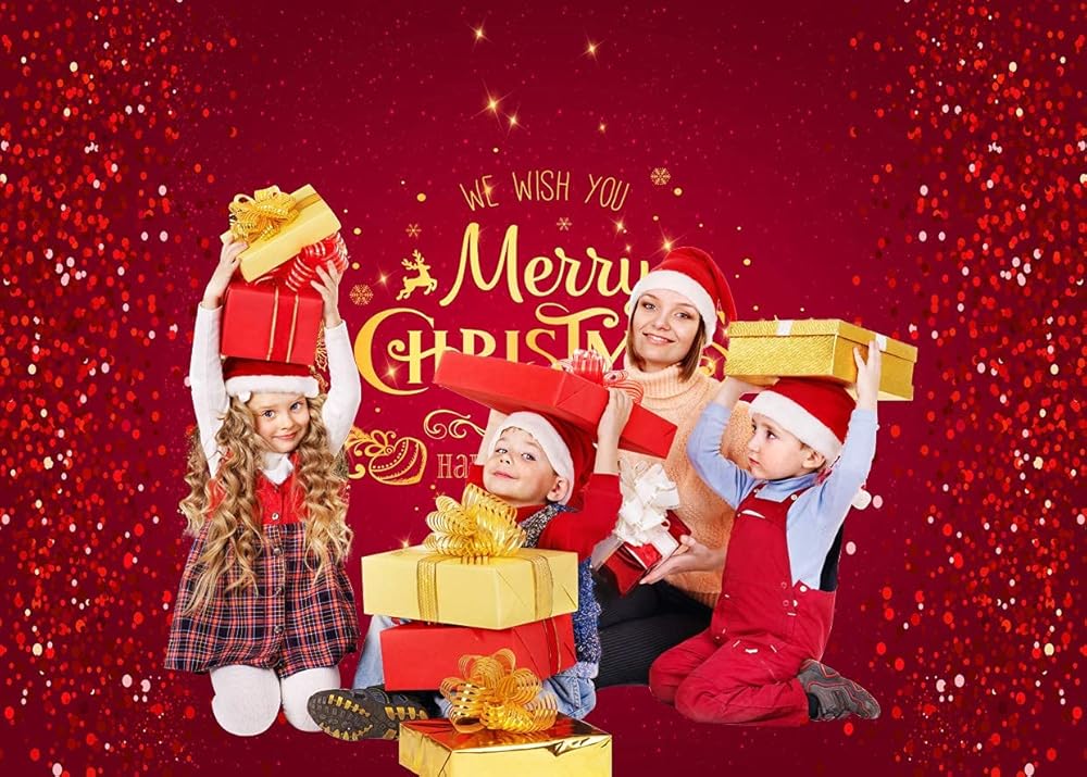 WOLADA Merry Christmas and Happy New Year Photography Backdrop Red Glittery Background Ideal for Christmas Parties Holiday Photo Shoots Family Gatherings Studio Props Festive Decor 7x5FT 11725