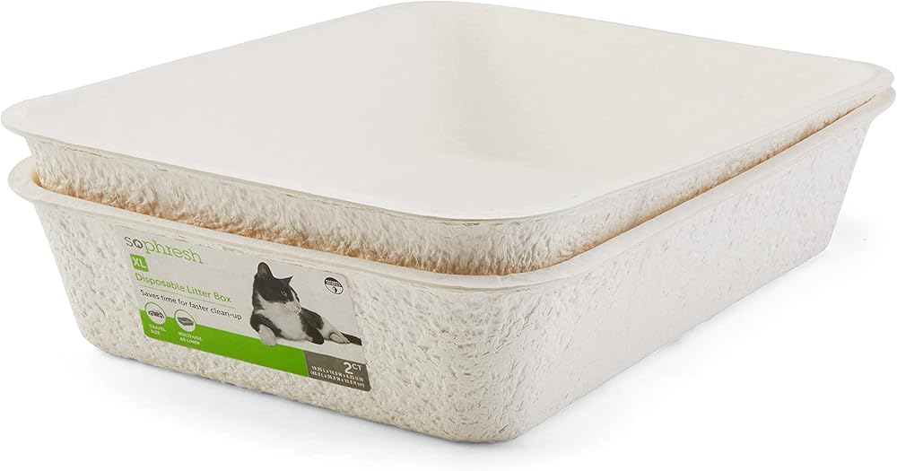 The So Phresh X-Large Disposable Litter Box Set includes two travel-size pans made of bagasse, a natural and sustainable fiber. With your kitty by your side, head off on cross-country or routine trips knowing that their mess will be contained quickly and easily with this set's 1-step clean-up process. If travels aren't on your agenda, these pans can also be used in your home as a regular litter box or liner.