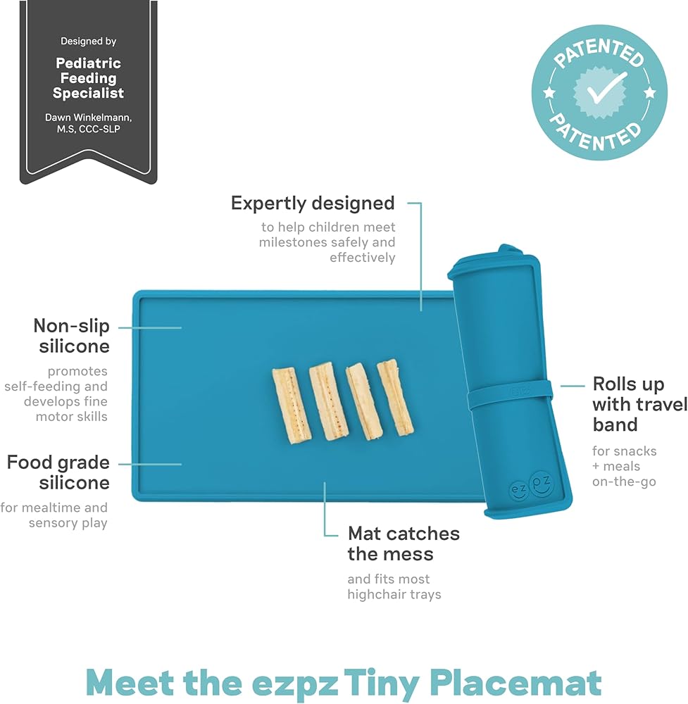Eco-Friendly Alternative: Unlike disposable placemats for toddlers, our ezpz Tiny Placemat is a sustainable choice, crafted from 100% silicone material that is durable, reusable, and dishwasher safe. By choosing our placemat, you reduce waste while providing a reliable, non-slip surface for your child's mealtime.
