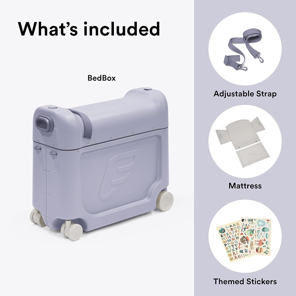 • RIDE-ON LUGGAGE - Prepare your little adventurer for journeys far & wide with JetKids BedBox. Children from 2-7 can scoot along on their own, ride it as a parent pulls, or pull it themselves. The adjustable strap also allows parents to carry it.