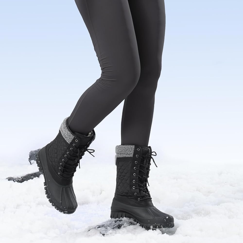 * WATER-RESISTANT UPPERS * :Women's winter boots has a waterproof duck toe;Synthetic high-tech uppers that prevent snow and water from drenching the shoes and keeps feet dry;