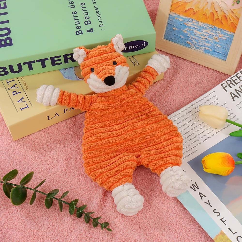 Perfect Companion: The infant baby lovey Corduroy Fox security blanket is an ideal companion for babies to play and snuggle. It measures 10.3 Inches, making it the perfect size for your baby to grip, stimulating tactile development and exercise hand strength.