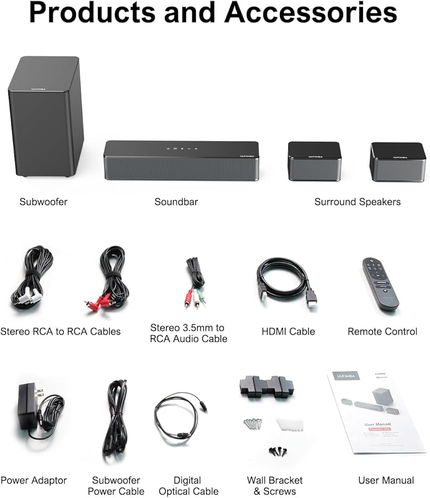 Easy to set up & Decent Design: ULTIMEA sound bars for tv support multiple wired and wireless connection. With the help of ULTIMEA clear instructions, you can easily set it up and start exploring the fun of surround sound. This decent soundbar with subwoofer also allows you to place it on stand, cabinet or under the TV. Perfect to build your home theater sound system.