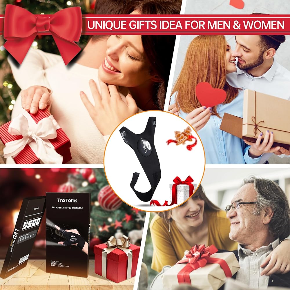ThxToms LED Flashlight Gloves,Father Gifts for Men Him,Christmas Birthday Gifts for Dad Father Husband, Cool Gadgets Tools for Repairing Fishing Camping, 1 Pair Black