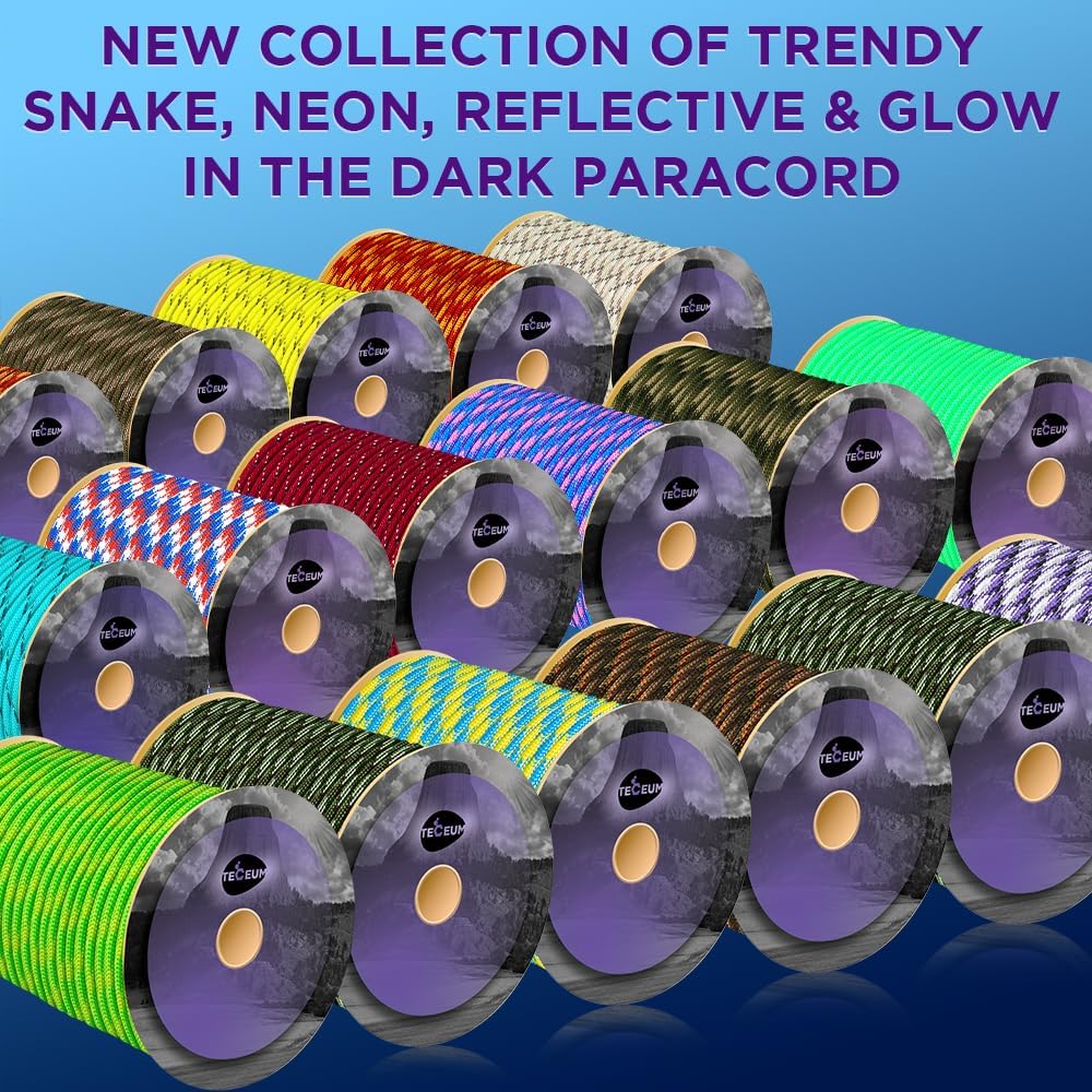 NEW COLLECTION of unique vibrant paracord features lots of CAMO, NEON, REFLECTIVE & GLOW IN THE DARK colors.
