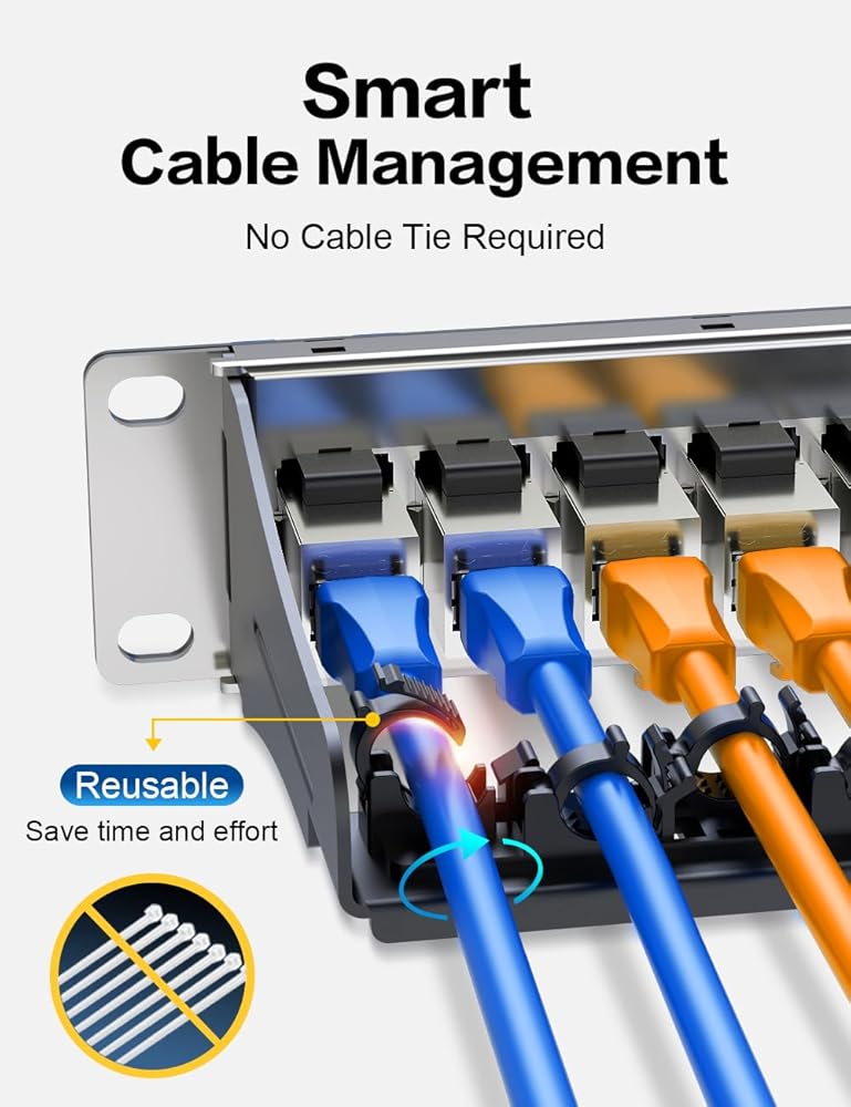 Smart Cable Management:The 24 Port patch panel does not need cable ties, making it easier to organize wires, and it is reusable and more environmentally