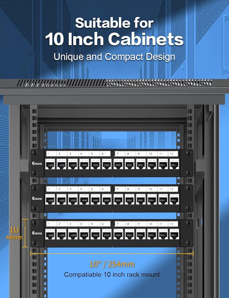 Easy use and time save:Up to 80% time save and only 10 minutes needed to install Cat6a shielded inline 1u RJ45 patch panel. This ethernet patch panel is much better than punching down keystones patch panel 24 port