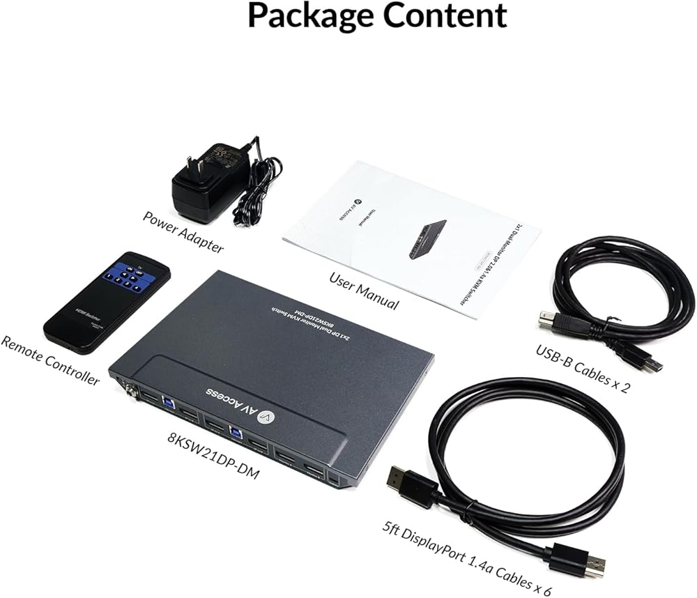 AV Access 8K KVM Switch 2 Monitors 2 Computers DisplayPort 8K@60Hz 4K@165hz/144hz, DP KVM Switch Dual Monitors with USB 3.0 Ports, Audio, Fast Hotkey or IR Remote Switch, with 6 DP Cables