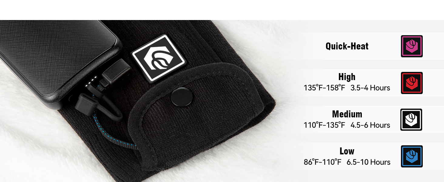 ✽【APP Remote Contro】No need to register, download the "Q-warmer" APP and then switch on/off, adjust the temperature (85℉-158℉) and timer (up to 120 minutes) on your phone. The button on the battery pocket is convenient to adjust the temperature manually.