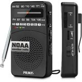 PRUNUS J-161 Pocket NOAA Weather Radio, AM FM Radio Battery Operated by 2 AA Transistor Radio with Best Reception,Stereo Earphone Jack, for Emergency,Hurricane,Running, Walking,Home (Silver)