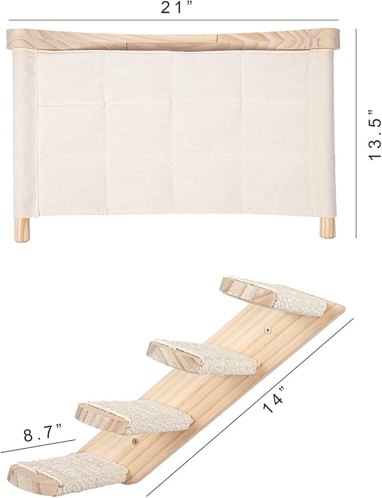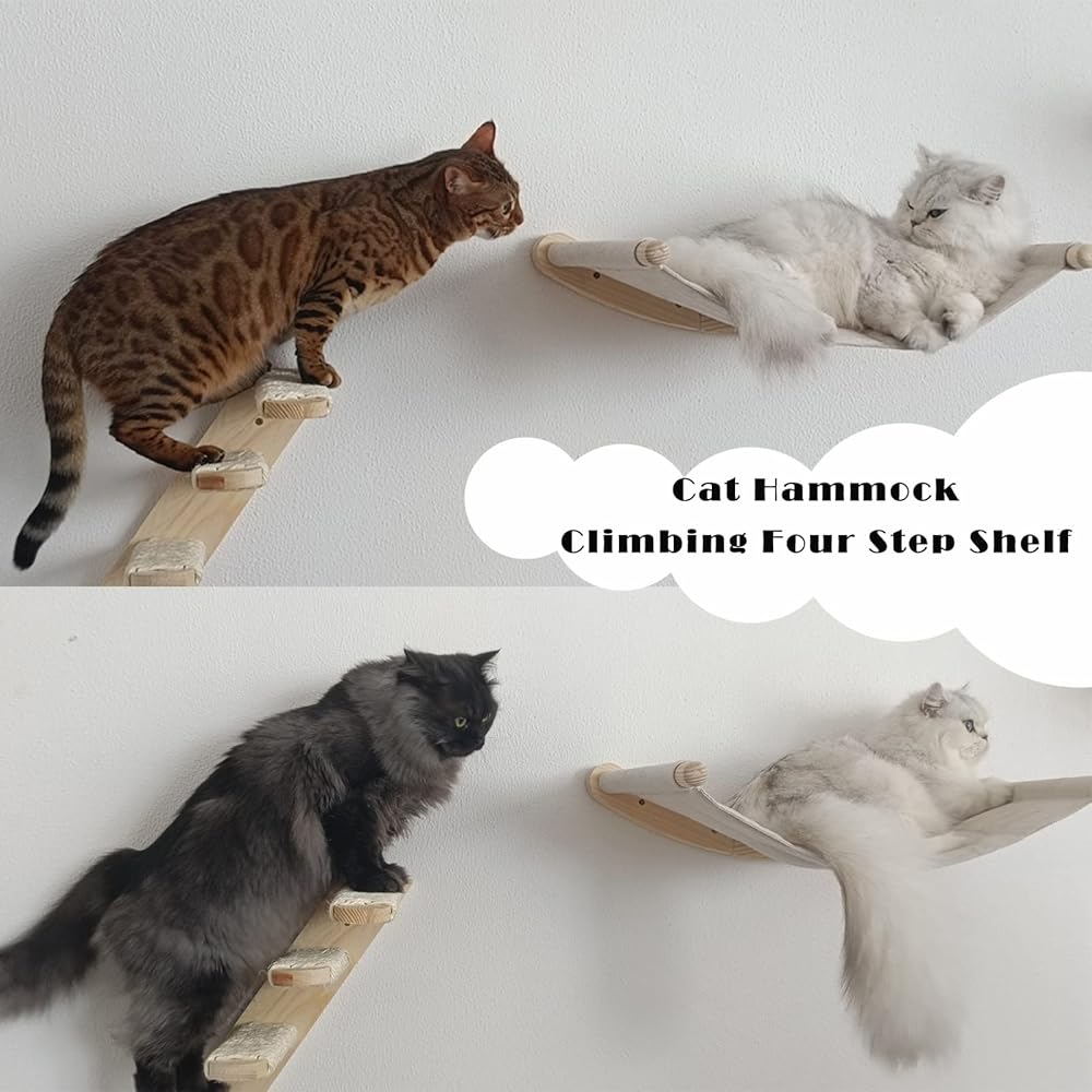 【Diy Cat Shelves】 - Cat hammock and cat climbing ladder provides multi-level design to fill your cat's instinct to climb. Shelves for cats on the wall give your cats an enjoyable environment to keep them active and happy.