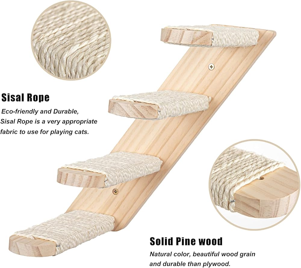 【Sturdy Wall Cat Shelves】- Made of solid pine wood pillar covered high quality natural sisal and polyester. No glue, non-toxic, safe and stable for your cat's play.