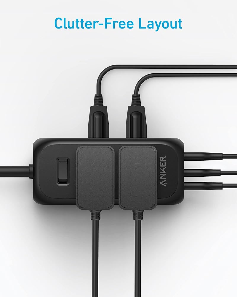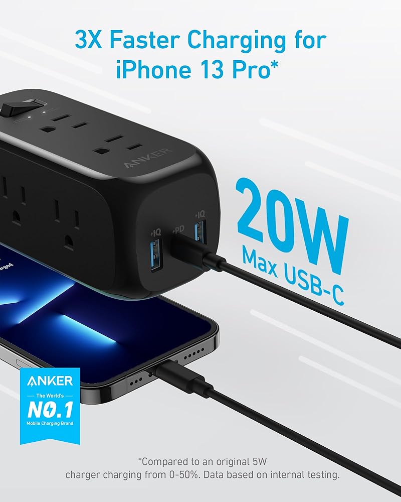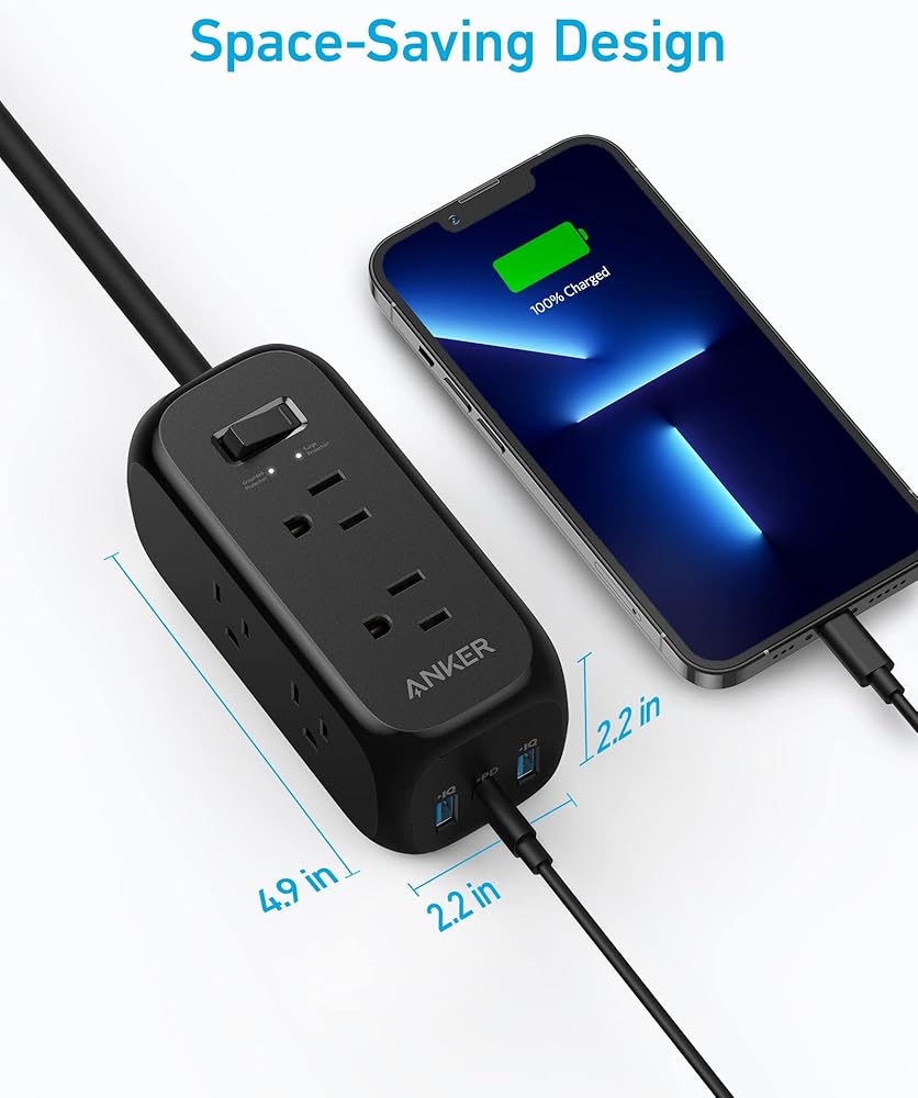 Anker 332 USB Power Strip - 6 Outlets, 10ft Extension Cord, 20W Power Delivery for iPhone 15 Series, 300J Surge Protection, 3-Side Outlet Extender, Compact and Versatile Design for Home and Office Use