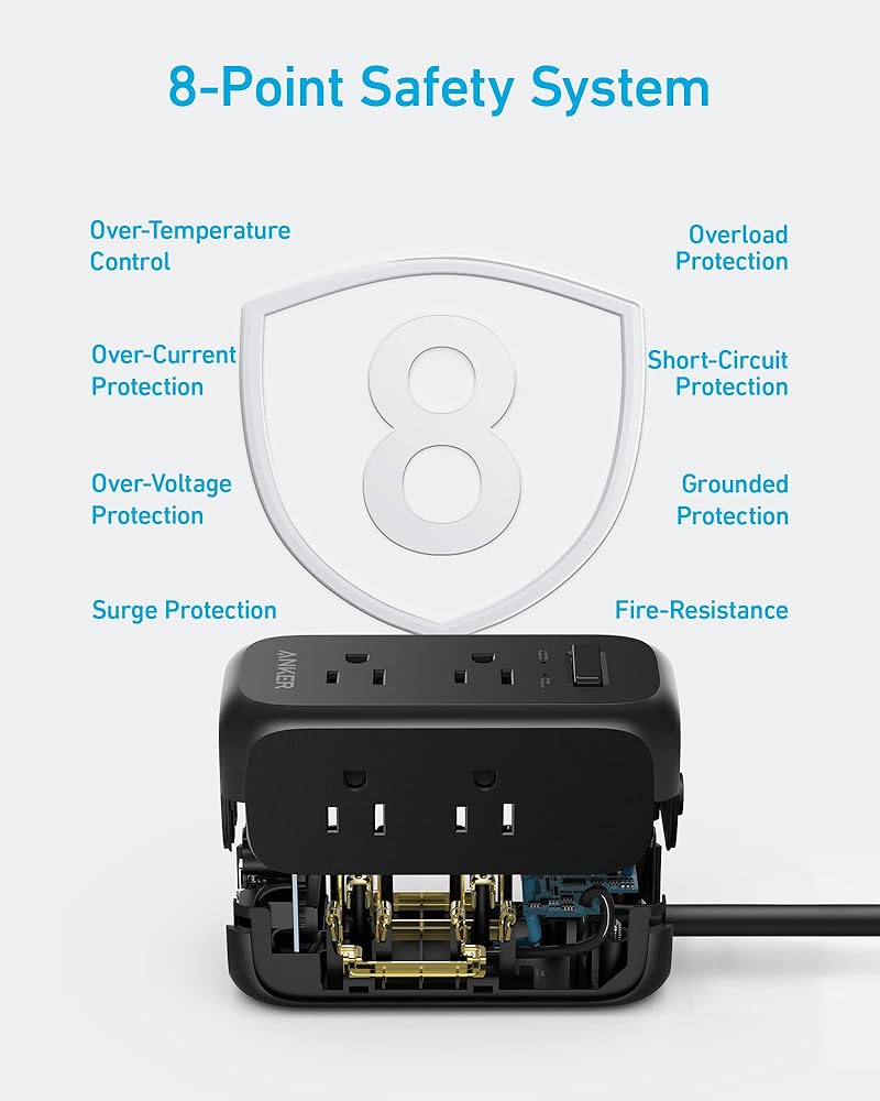 8-Point Safety System: Features fire-resistance, overload protection, surge protection, over-temperature protection, and more to deliver safe power to your connected devices.