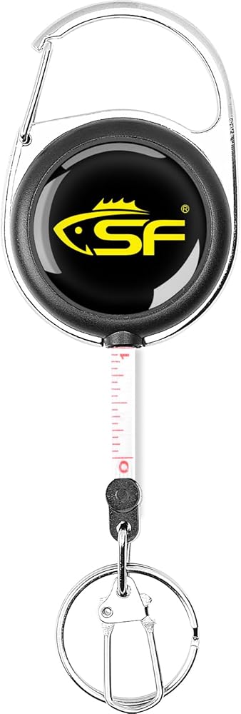 Material: Black plastic case with single sided epoxy cover, with retractable double scales rulers, 100cm/40inch acrylic fiber waterproof ruler tape, tainless steel spit ring and buckle.