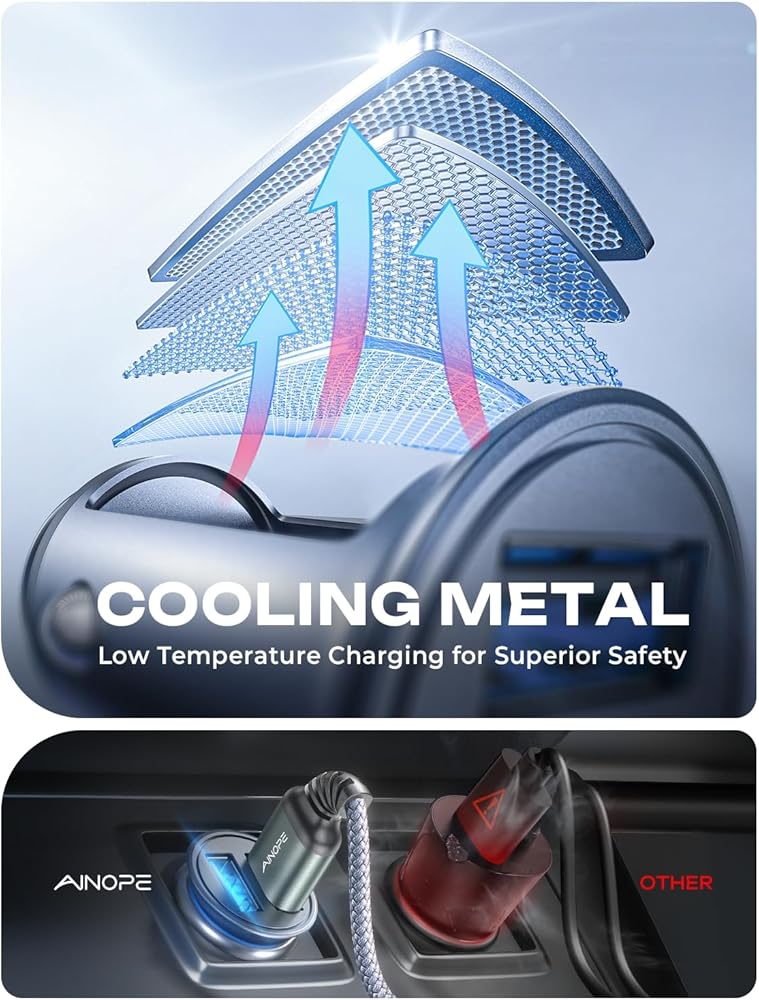 ALL METAL, WON'T HEAT: The full zinc alloy body is scratch-resistant, sturdy, and attractive. The high-quality material keeps your car charger adapter always looking new. This metal usb car charger will not overheat at high temperatures, which makes it safer than plastic ones.