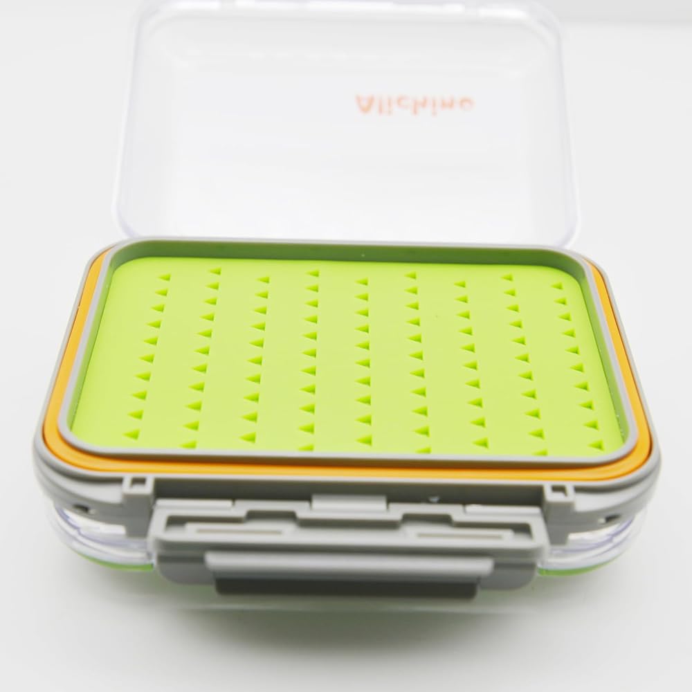 Alichino Fly Box for Fly Files Ice Jig Box Two Sided Waterproof Fly Fishing Box for Nymphs and Streamers (Green Silicone Insert B, M 7.3 * 4.5 * 1.6Inch)