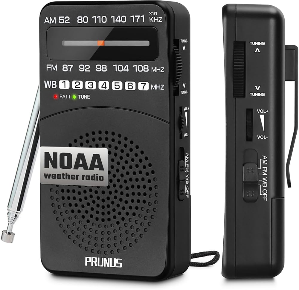 PRUNUS NOAA Weather Radio AM FM, Battery Powered Radio by AA, Transistor Radios, Earphone Jack, Portable Radio AM FM WB for Emergency, Hurricane, Floods, Snowstorms