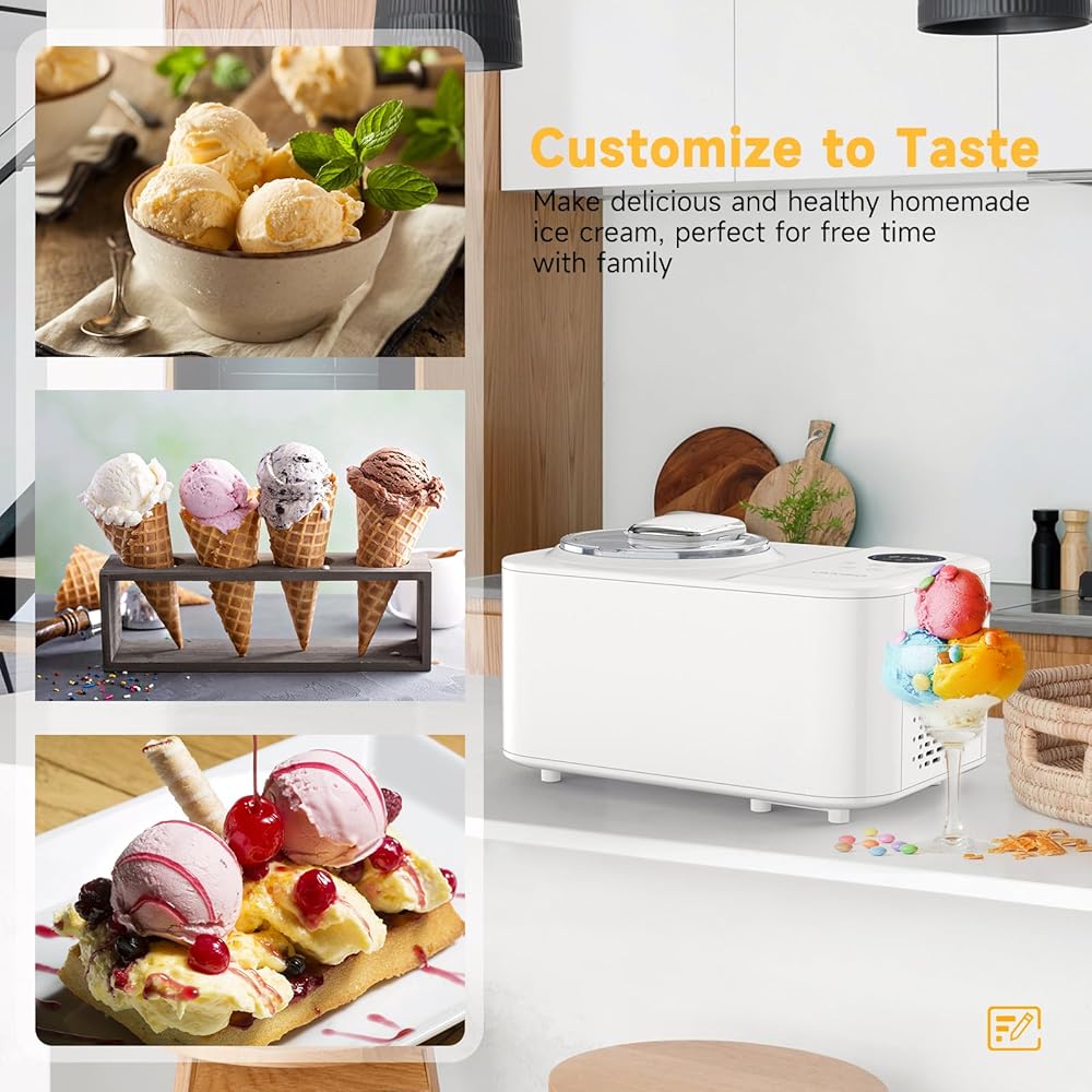 صانع الآيس كريم للمنزل: آلة صنع الآيس كريم الأوتوماتيكية سعة 1.2 لتر مع شاشة LCD، آلة صنع الآيس كريم محلية الصنع من الفولاذ المقاوم للصدأ مع ضاغط للمنزل، هدية عيد الميلاد