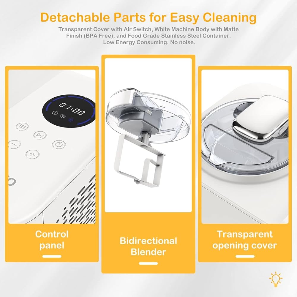🍦[الفولاذ المقاوم للصدأ بدرجة الطعام] مصنوع من الفولاذ المقاوم للصدأ الملامس للطعام، يمكنك الاستمتاع بالآيس كريم بأمان أكبر. إن الوعاء والمجاديف المصنوعة من الفولاذ المقاوم للصدأ القابلة للفصل لآلة الآيس كريم الناعمة هي أيضًا أكثر ملاءمة للتنظيف