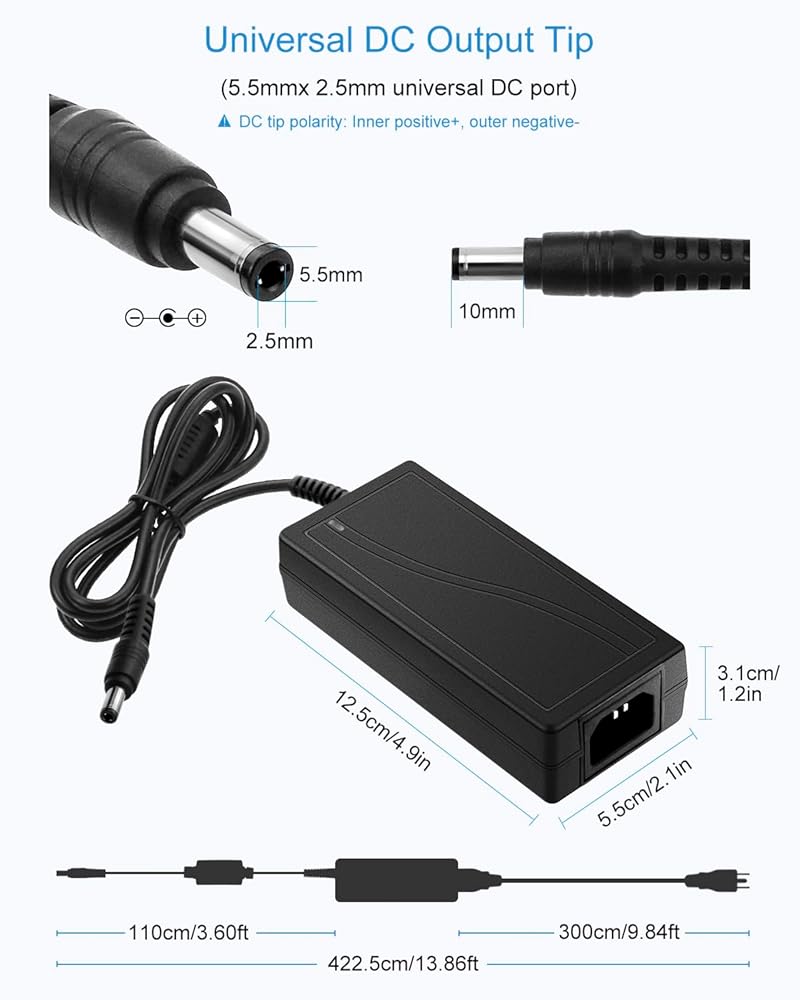 - It is perfect for LED Strip Light, Wireless Router, ADSL Cats, HUB, Switches, Security Cameras, Audio/ Video Power Supply.