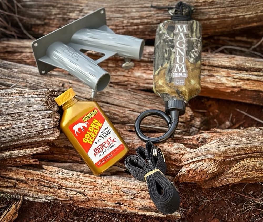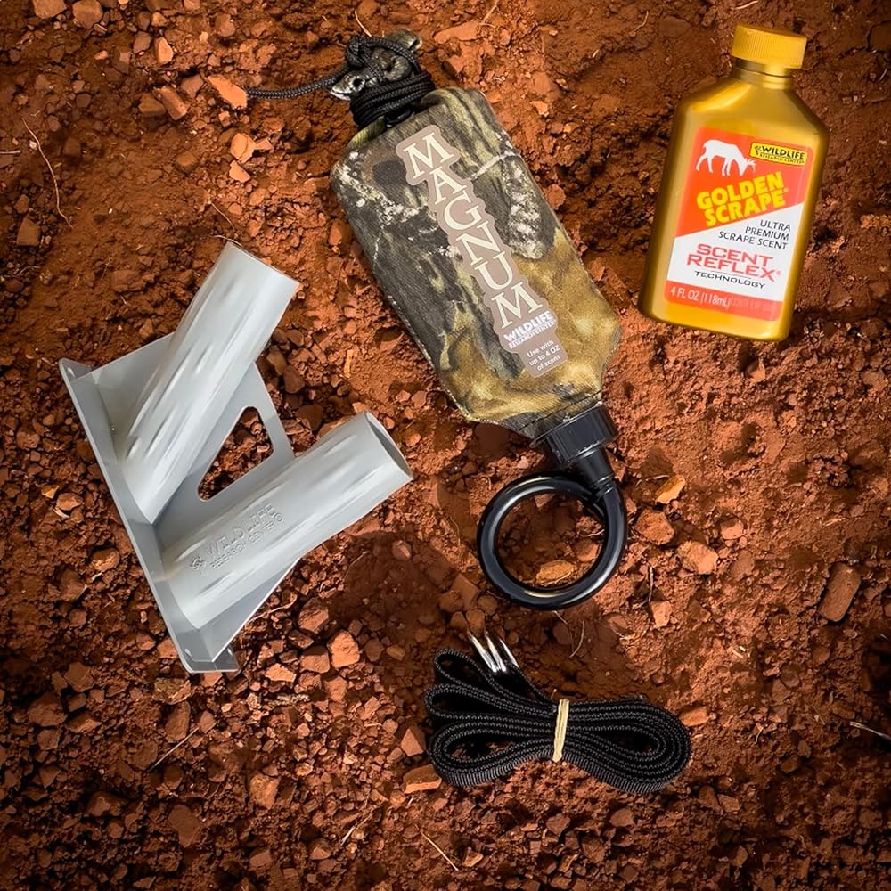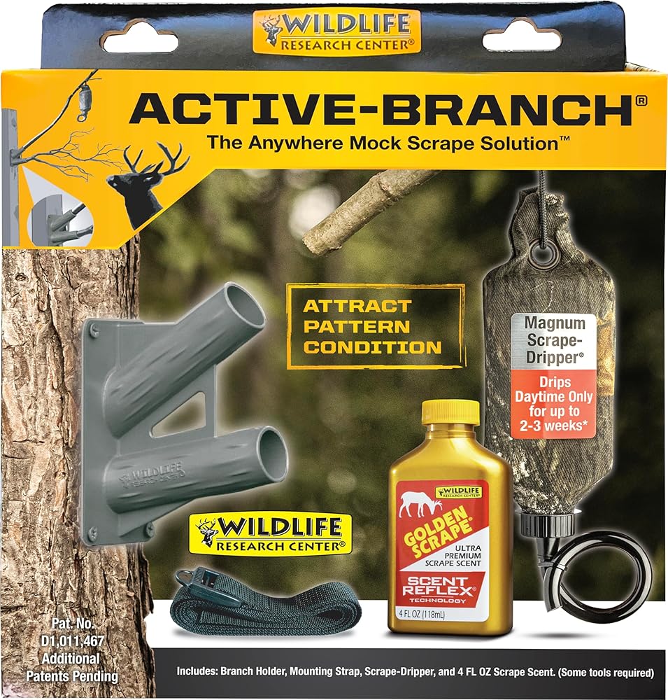 Kit includes one (1) Active-Branch branch holder with mounting strap, one (1) Magnum Scrape-Dripper, and one (1) 4 fluid ounce bottle of ultra-premium Golden Scrape scent