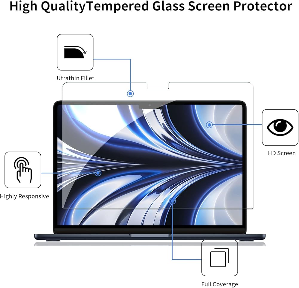 avakot 2 Pack Screen Protector for MacBook Air 13.6 Inch Tempered Glass 2022, Screen Protector for Macbook Air M2 13.6 Ultra Thin Tempered Film Touch Sensitive Scratch Resistant