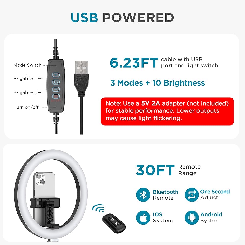 Packed with user-friendly features like a wireless remote shutter for hands-free photo and video control, and extended compatibility via a universal 1/4" thread size, this selfie ring light works seamlessly with webcams, compact cameras, GoPros, microphones, and more. Whether you're a content creator, professional, or hobbyist, the Selfie Ring Light with Arm Stand elevates your creative potential while delivering convenience and reliability in every use.