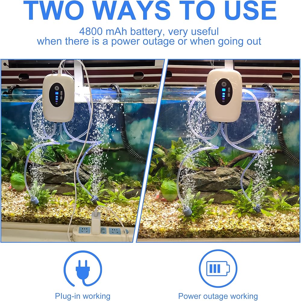 🎣【Rich Applicable Scenarios】This quiet air pump is perfect for both Freshwater and Marine Aquariums, great to be used for all types of tanks with capacity of 5-15 Gal.