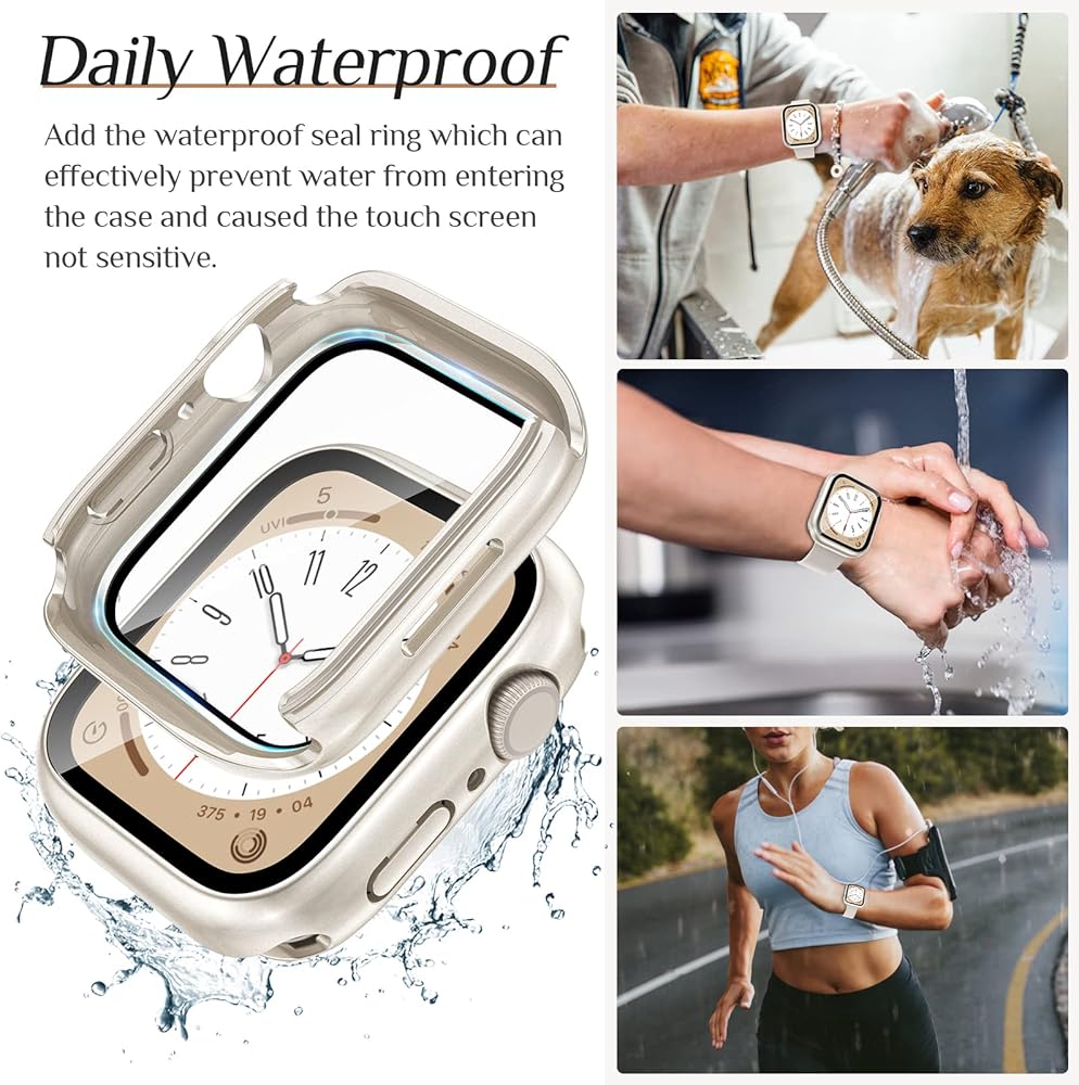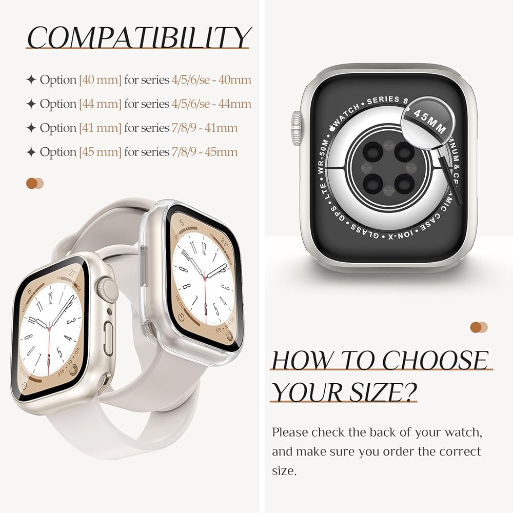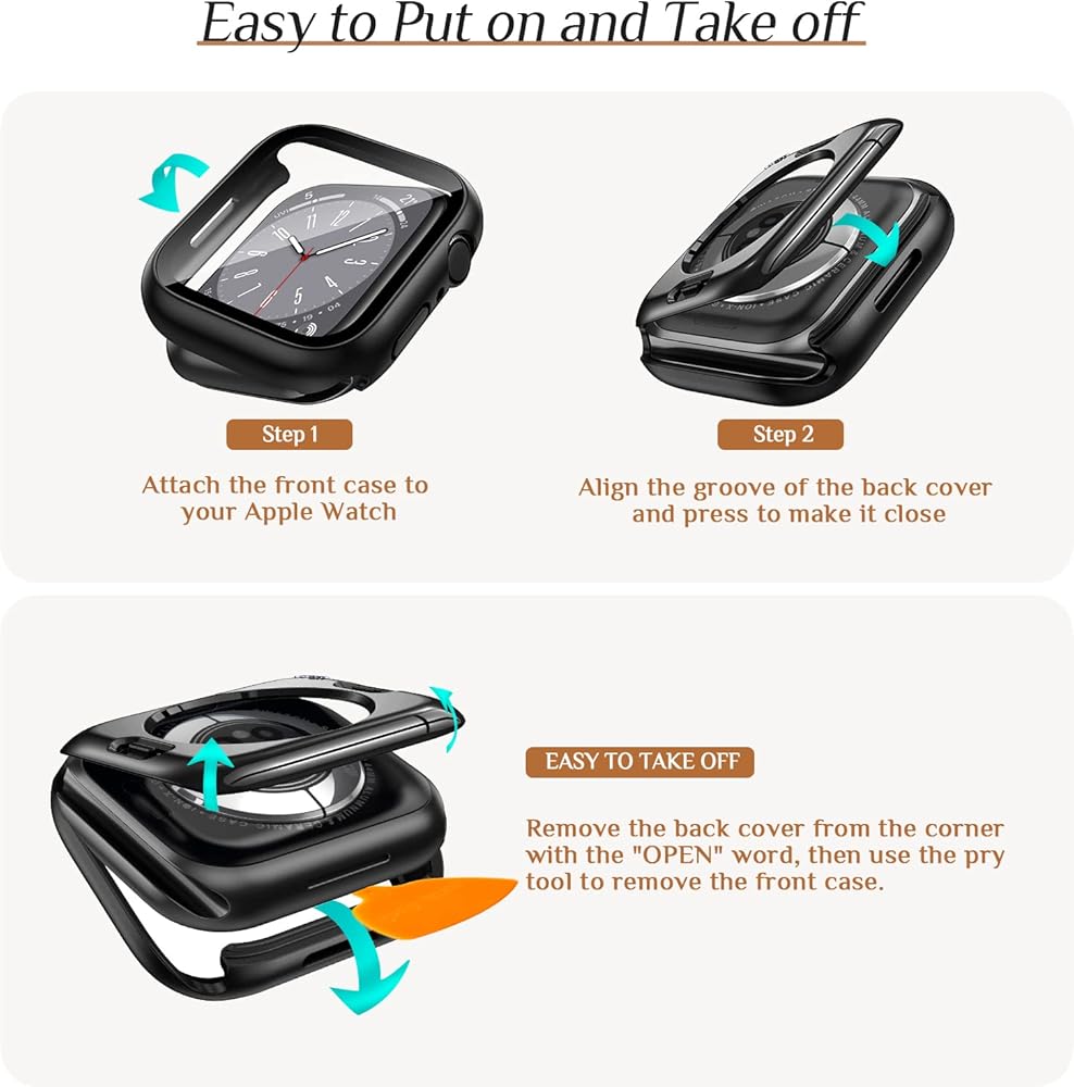 2-in-1 Case: This apple watch case combines premium matte PC material with a 9H tempered glass screen protector and a hard rear bumper frame, offering 360-degree protection against scratches, cracks, and bumps