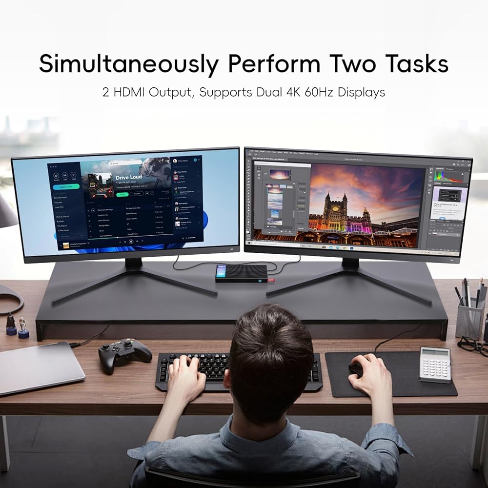 Elegant Fanless Cooling Design - This fanless PC features passive cooling system that prevents overheat. It provides a quiet and stable computing environment,supports 24/7 operation. While its unique design ensures dust resistance and silent operation, please note that fanless mini PCs will have a surface temperature of 55°C to 70°C, which is hotter than the case temperature of traditional fan-cooled mini PCs, but meets the safety standards of the International Electrotechnical IEC62368-1:2018.