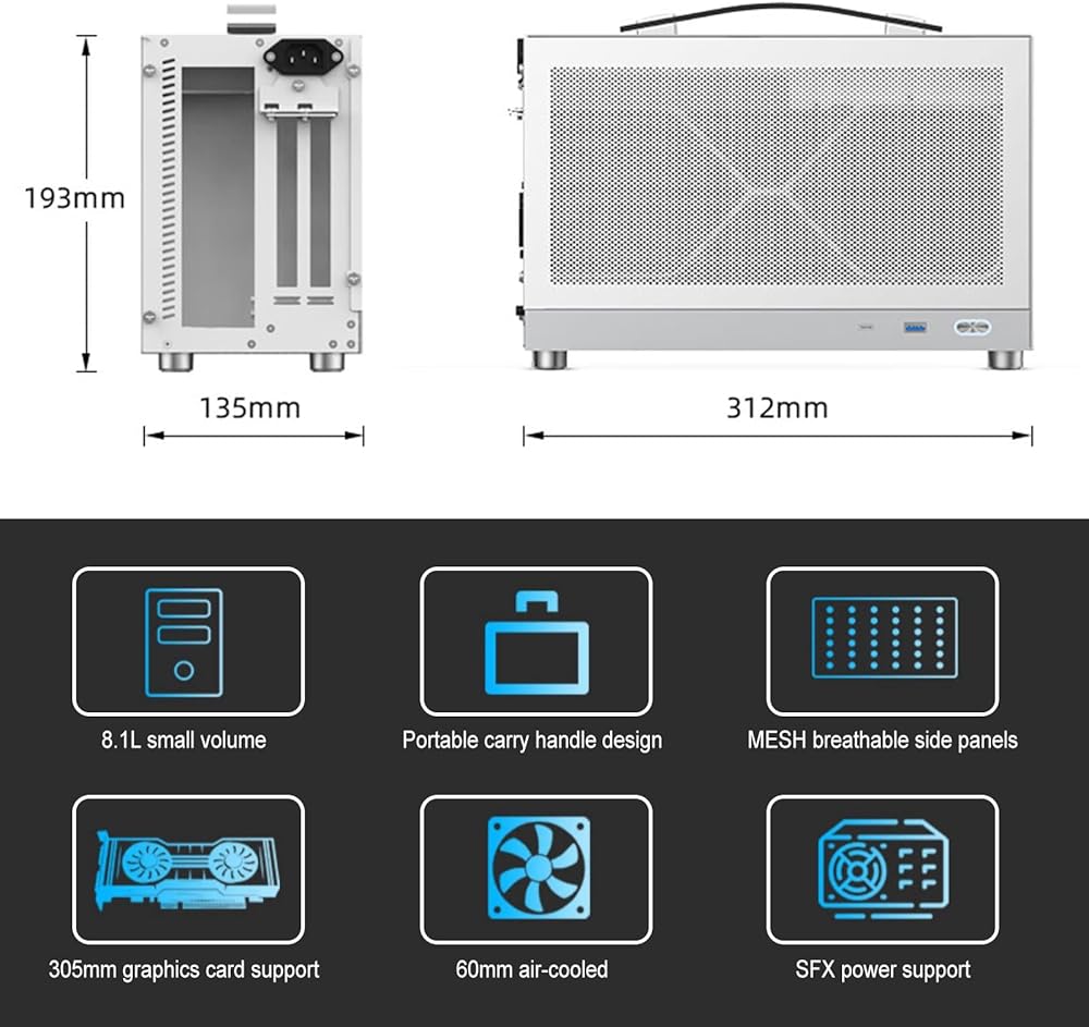 Size: 12.2 x 5.3 x 7.6 in, 8.1L Portable Handheld Minni Itx Case.
