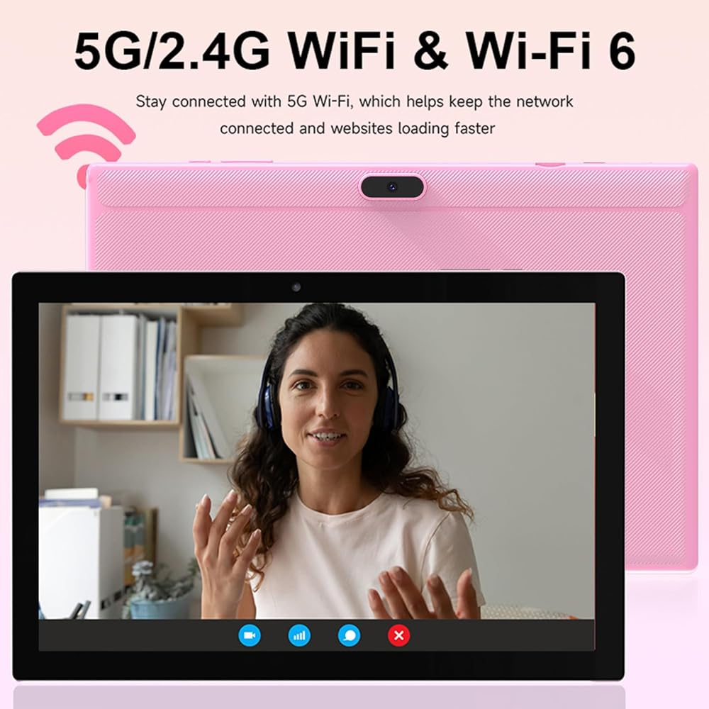 【Fashionable Portable and Ideal Gift Choice】10 inch Tablet with Slim body, Lightweight, exquisite appearance, looks fashionable and high-end. Tablets Featuring Fast and Stable WiFi, Bluetooth technology ensure rapid Connectivity. Therefore, this tablet is suitable for various people and scenarios. Such as watching movies, reading, listening to music, browsing web pages, learning online, and more. It will be ideal gift for your friends, family, Christmas, Thanksgiving, Easter and Birthday.