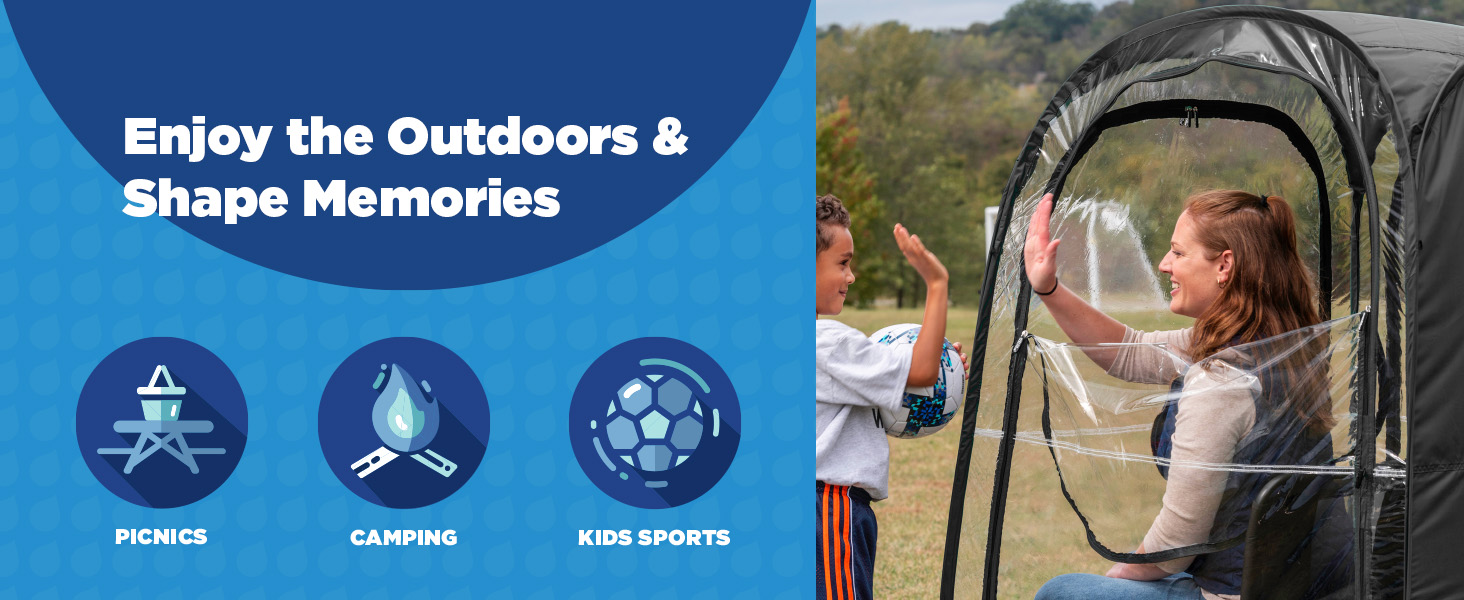 The Original Weather Pod: Slightly bigger than our 35x35 modular Pod, the Large 1-Person Pod's patented bubble is big enough to fully cover one adult in a folding camping chair, with plenty of legroom and space for a tote bag or small cooler