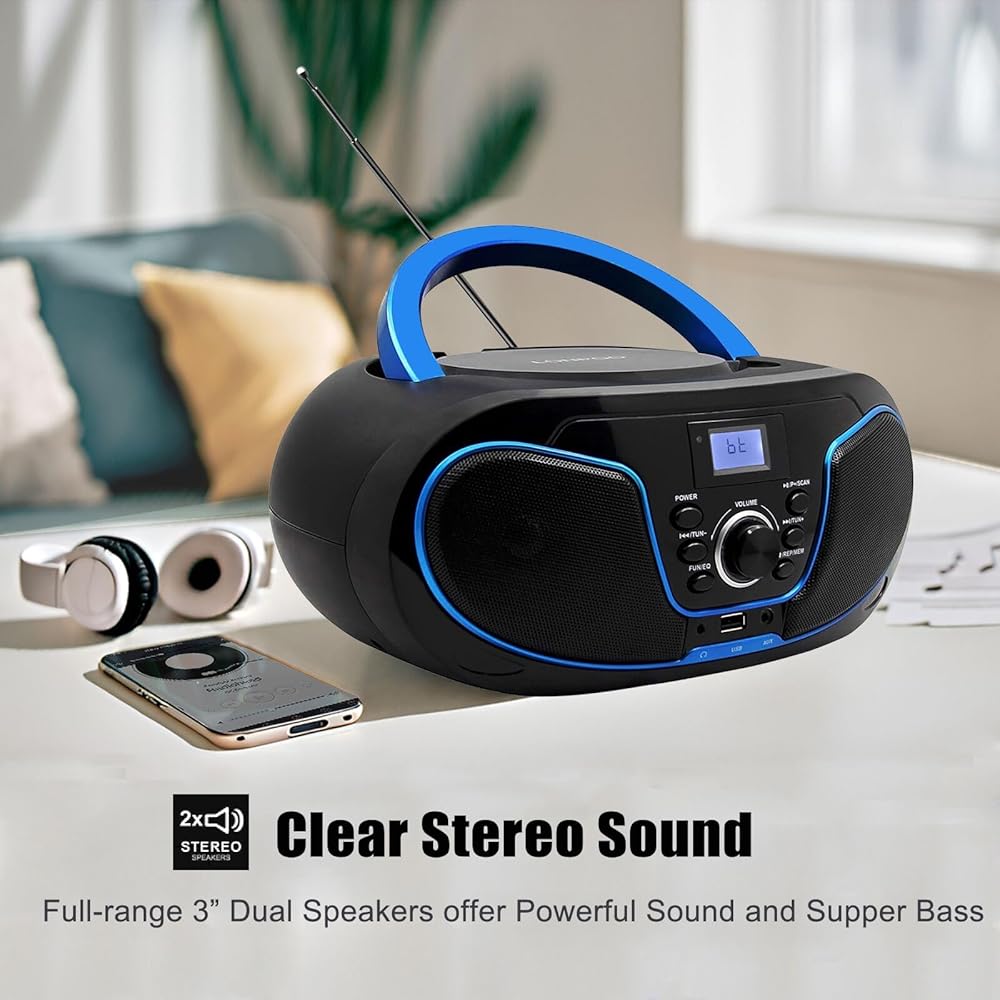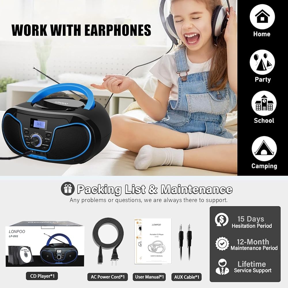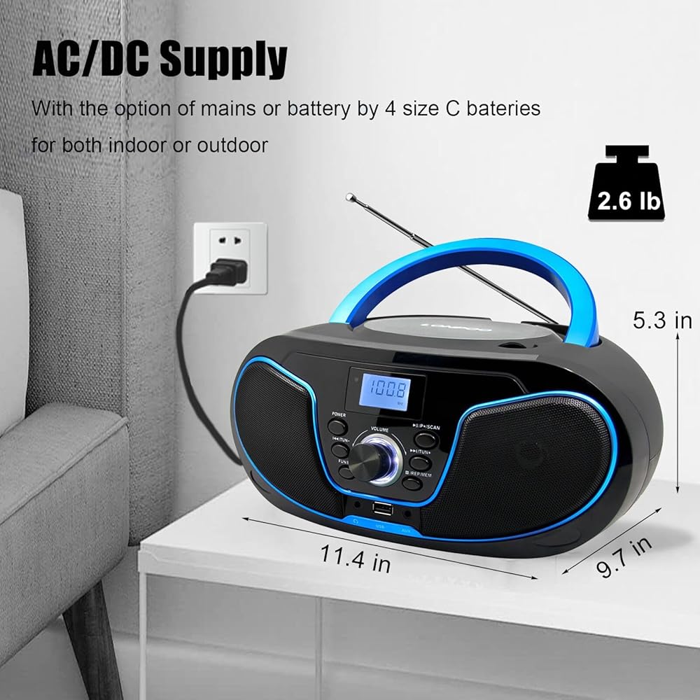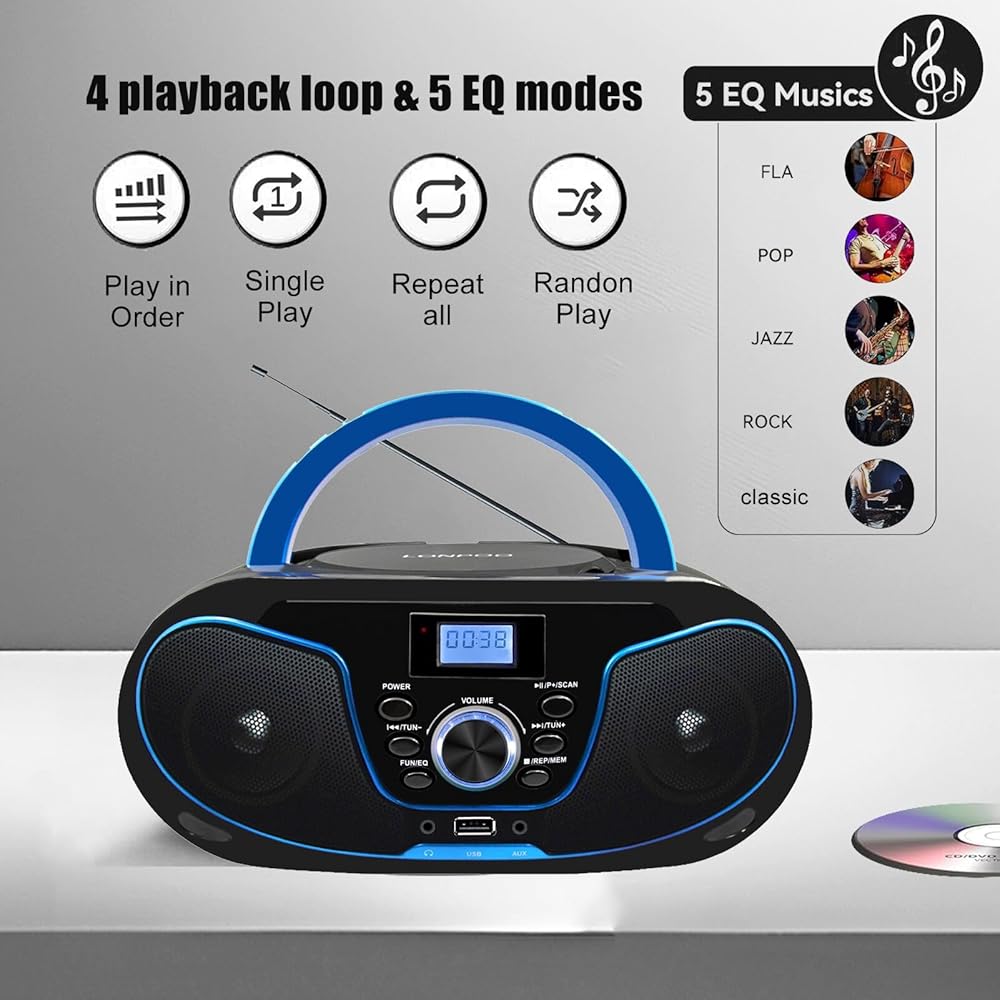 【Variety of Audio Modes & earphones Output】Support FM radio/ USB / AUX-IN input, A key switch, easy to use. Support headphone jack output from CD player, enjoy your favorite song in private, will not disturb other people.