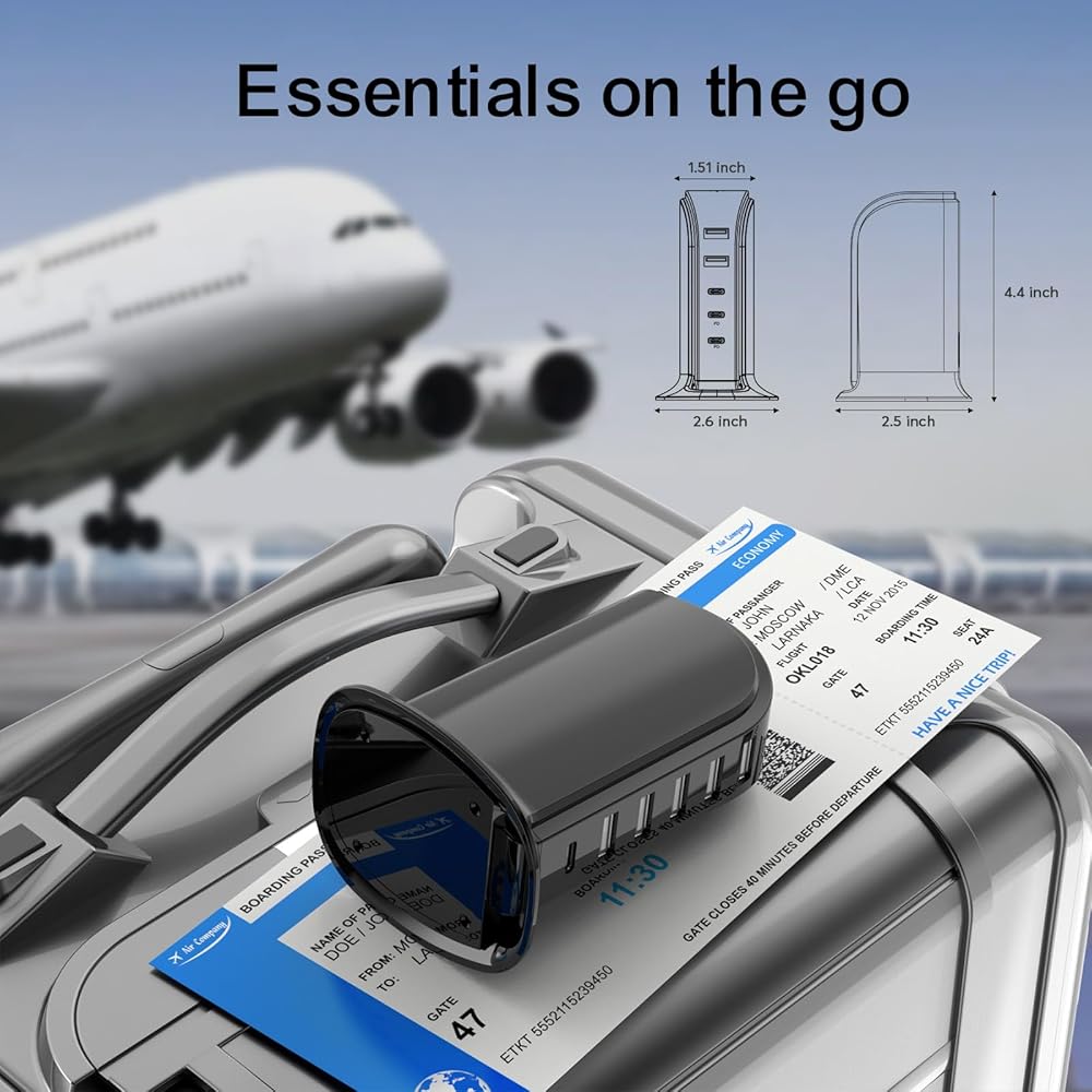 6 in 1 USB charger block with c port: Support 6 devices simultaneously, quick charger up to 2.4A for single USB port.